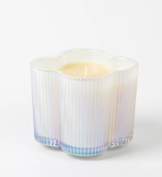 Charming and full of character, Sweet Grace Candle #076 blooms with beauty in a delightful flower-shaped vessel. Its ribbed texture and iridescent white finish catch the light from every angle, adding a playful yet elegant touch to any space. Crafted with our signature soy-blend wax, this 7.2 oz candle offers up to 41 hours of the beloved Sweet Grace fragrance, filling your home with warmth, style, and sweet sophistication.