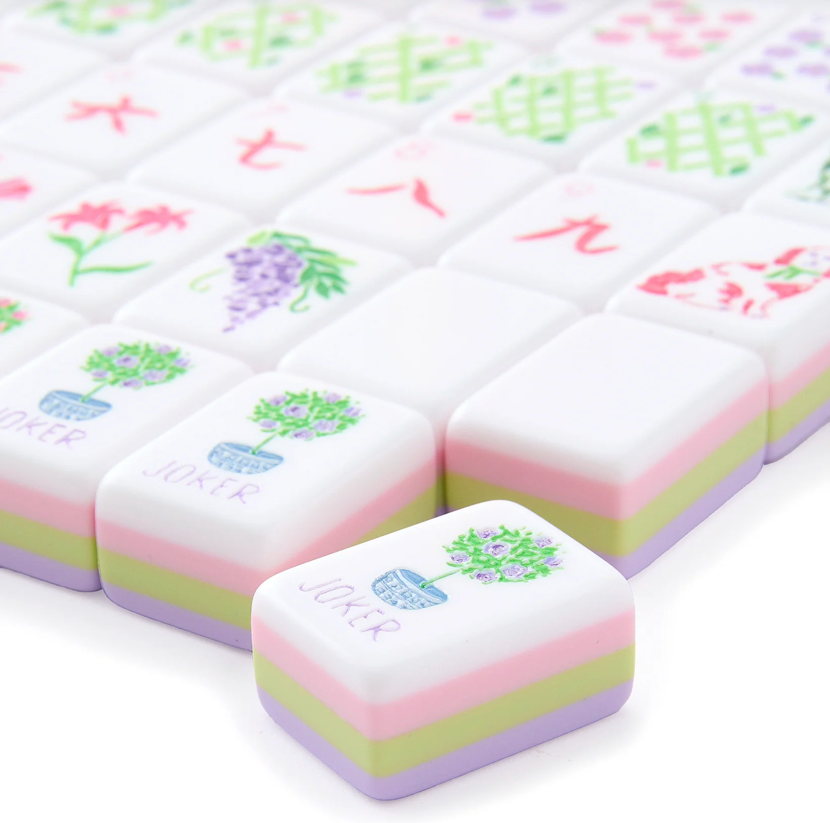 The Taylor Tiles are where punchy pastel hues meet country club sophistication and charm. This captivating collection incorporates a pastel palette appealing to the girly girls and the chic shoppers alike to elevate your Mahjong experience to new heights. Each tile in the Taylor line is meticulously crafted from premium materials, ensuring exceptional quality and countless evenings of elegant and delightful play.