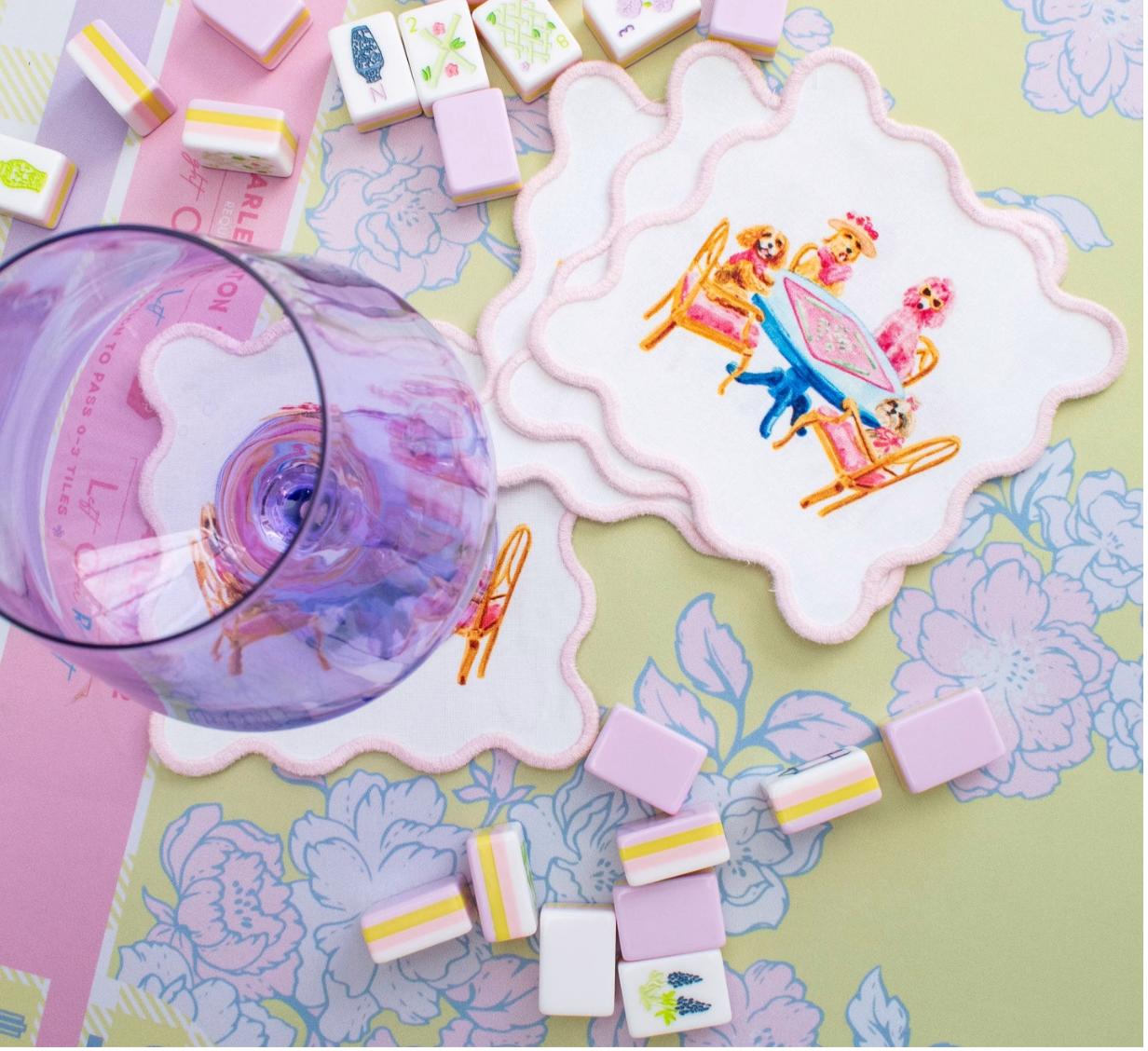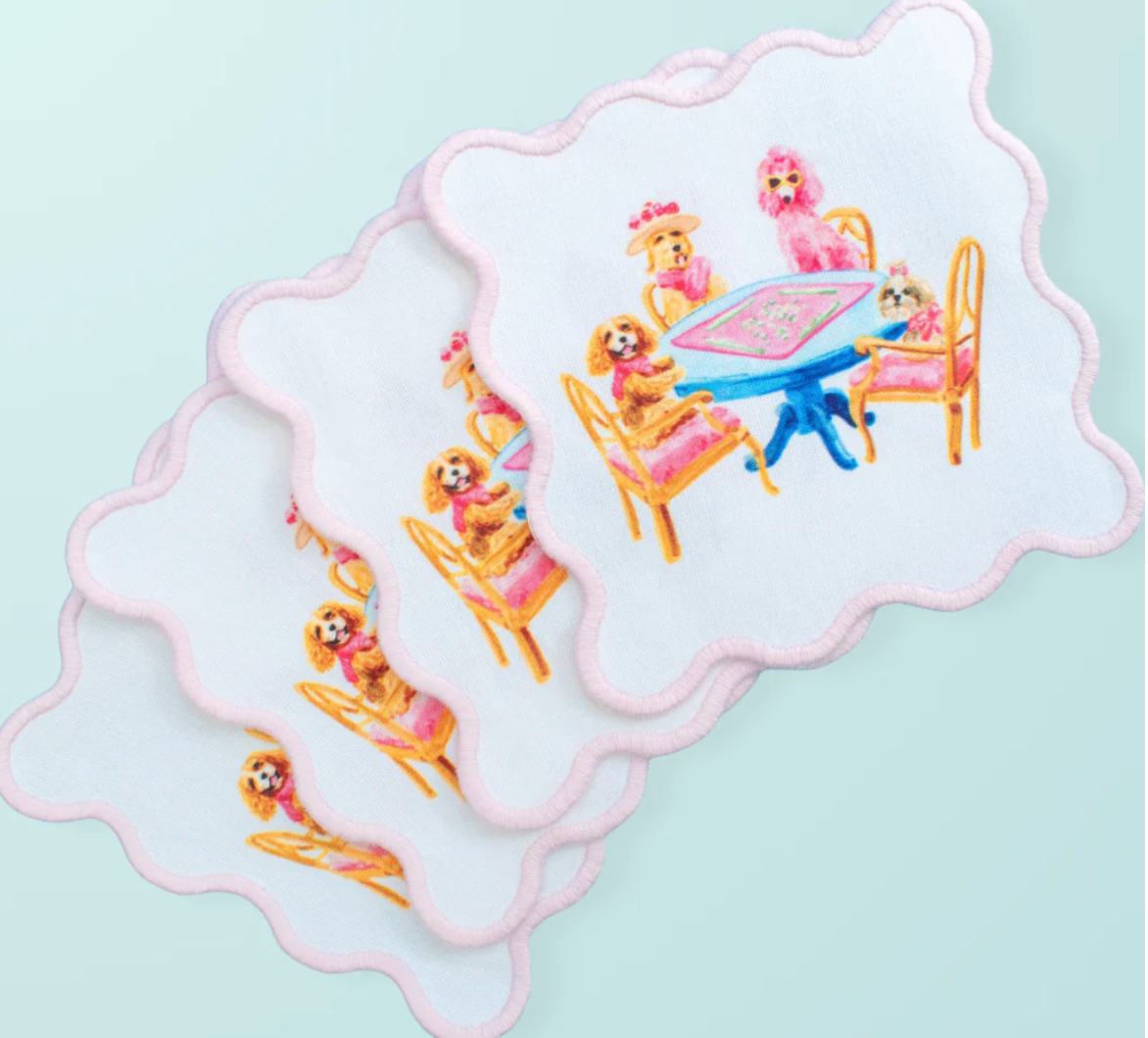 Dogs Playing Mahjong Cocktail Squares