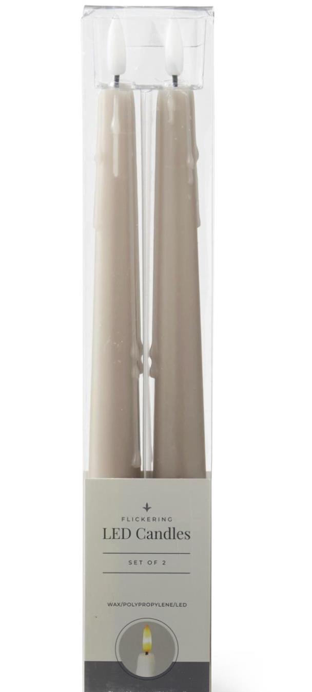 Set of 2 11.5 Inch Taupe LED Drip Taper Candles w/Timers