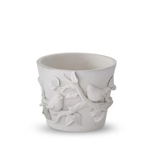 6 Inch White Ceramic Flower Embossed Egg Container w/Easter Bunny