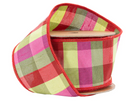4" Wired Ribbon | Red/White Bias Check w/ Red Dupioni-fused Backing | 10 Yard Roll (Copy)