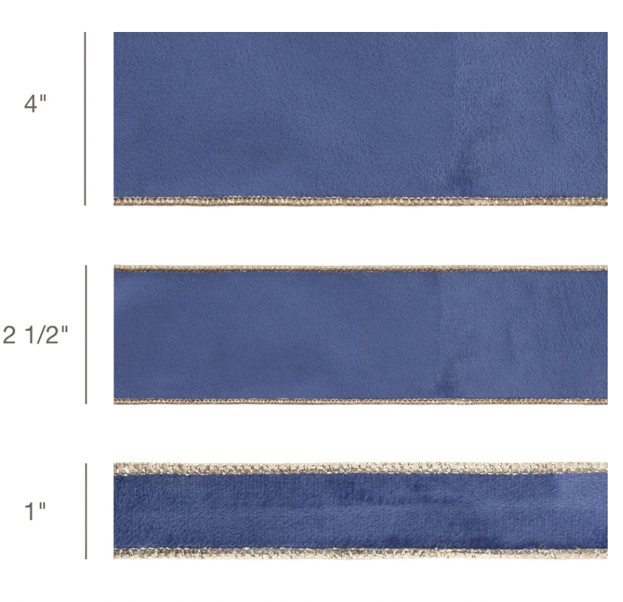 Elevate your projects with the Classic Velvet French Blue Ribbon, offered in 1", 2.5", and 4" widths, each measuring 10 yards long. Its rich navy velvet combines with elegant gold trim to provide a sophisticated finish, ideal for gift wrapping, decorating, or crafting detailed accents. The varying widths allow precise customization, ensuring versatile applications with lasting style.