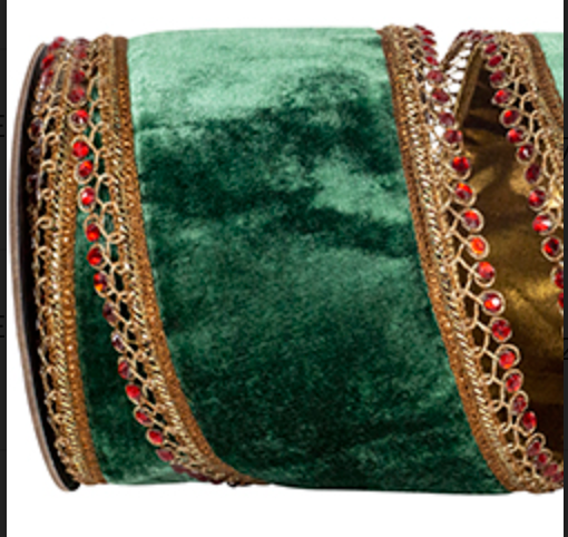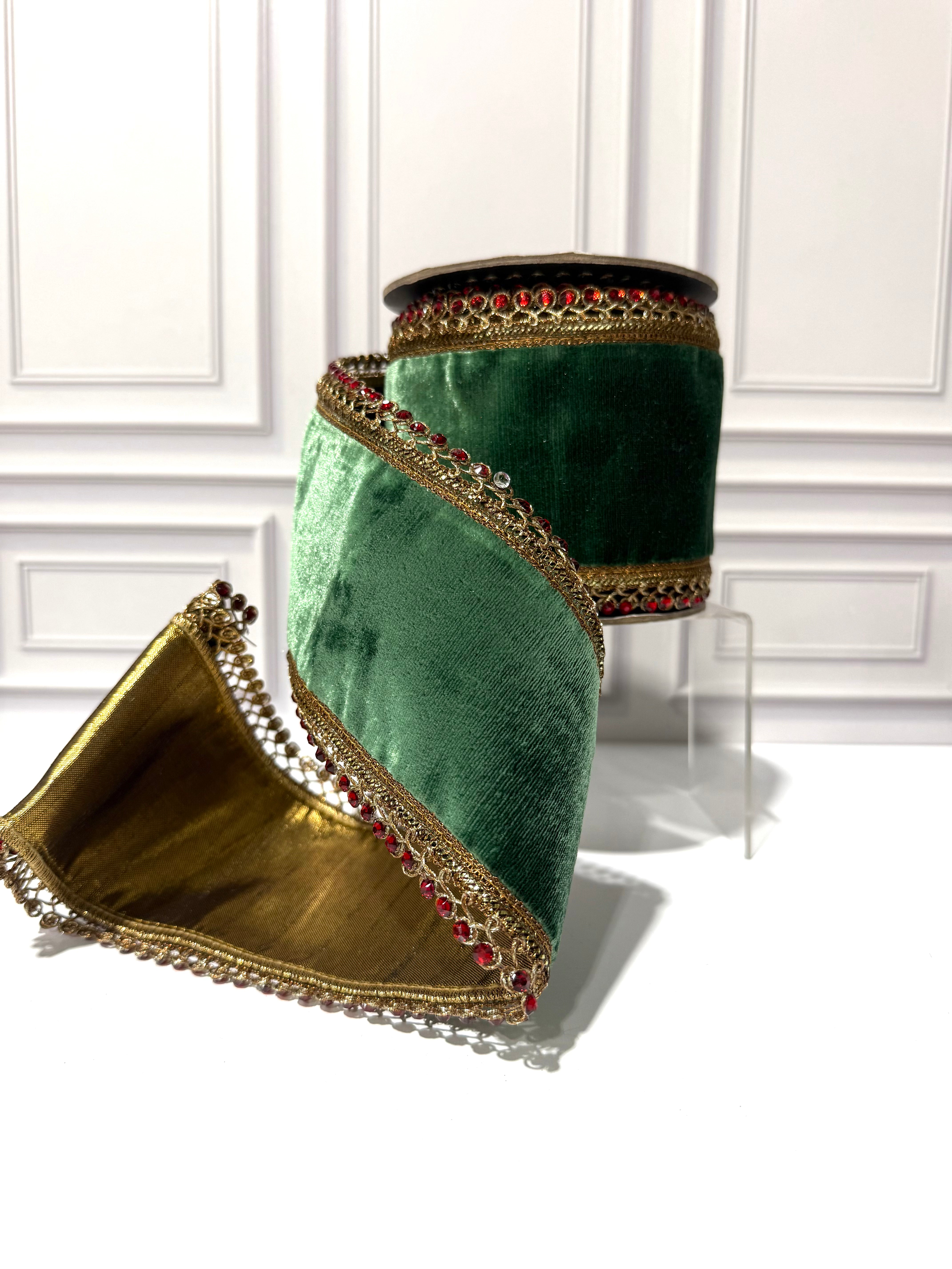 Jeweled Trimming Opulence Plush Velvet Deluxe Gold Backed Wired Edge Ribbon