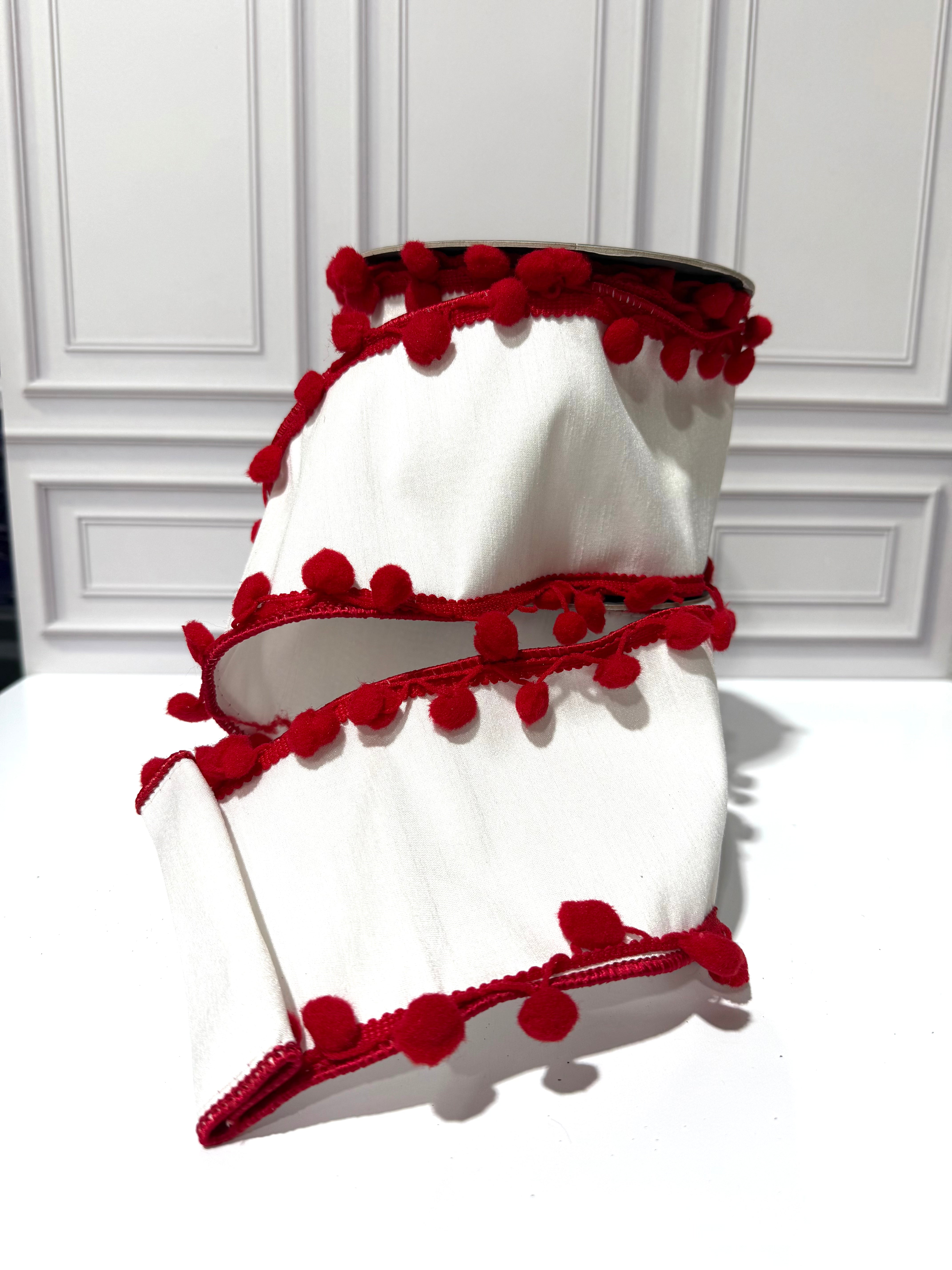 Pom Pom Edge Trimming Dupioni Deluxe Wired Edge Ribbon