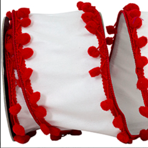 Playful meets elegant with the Pom Pom Edge Trimming Dupioni Deluxe Wired Edge Ribbon. Crafted from rich dupioni fabric, this deluxe ribbon is finished with charming pom pom trim along the edges. The wired design makes it easy to shape into festive bows, perfect for adding texture and whimsy to wreaths, gifts, and seasonal décor.