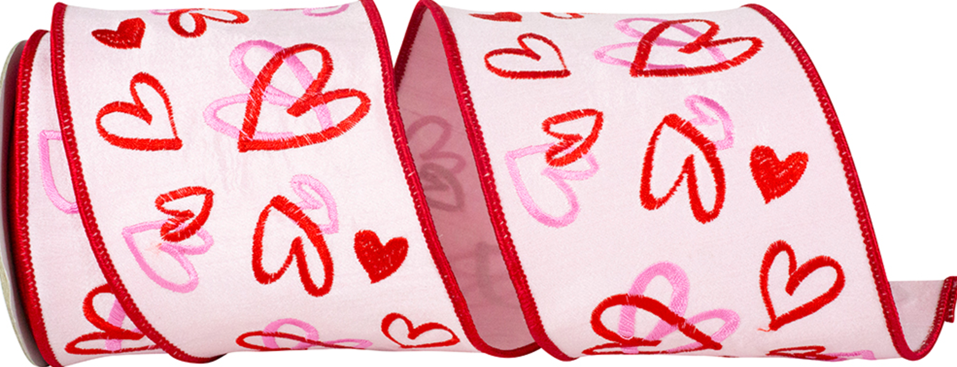 HEARTS TANGLE EMBROIDERED DUPIONI DELUXE WIRED EDGE