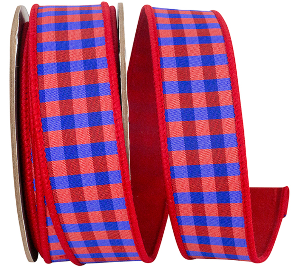 RED AND BLUE CHECK DELUXE RED DUPIONI BACKED WIRED EDGE