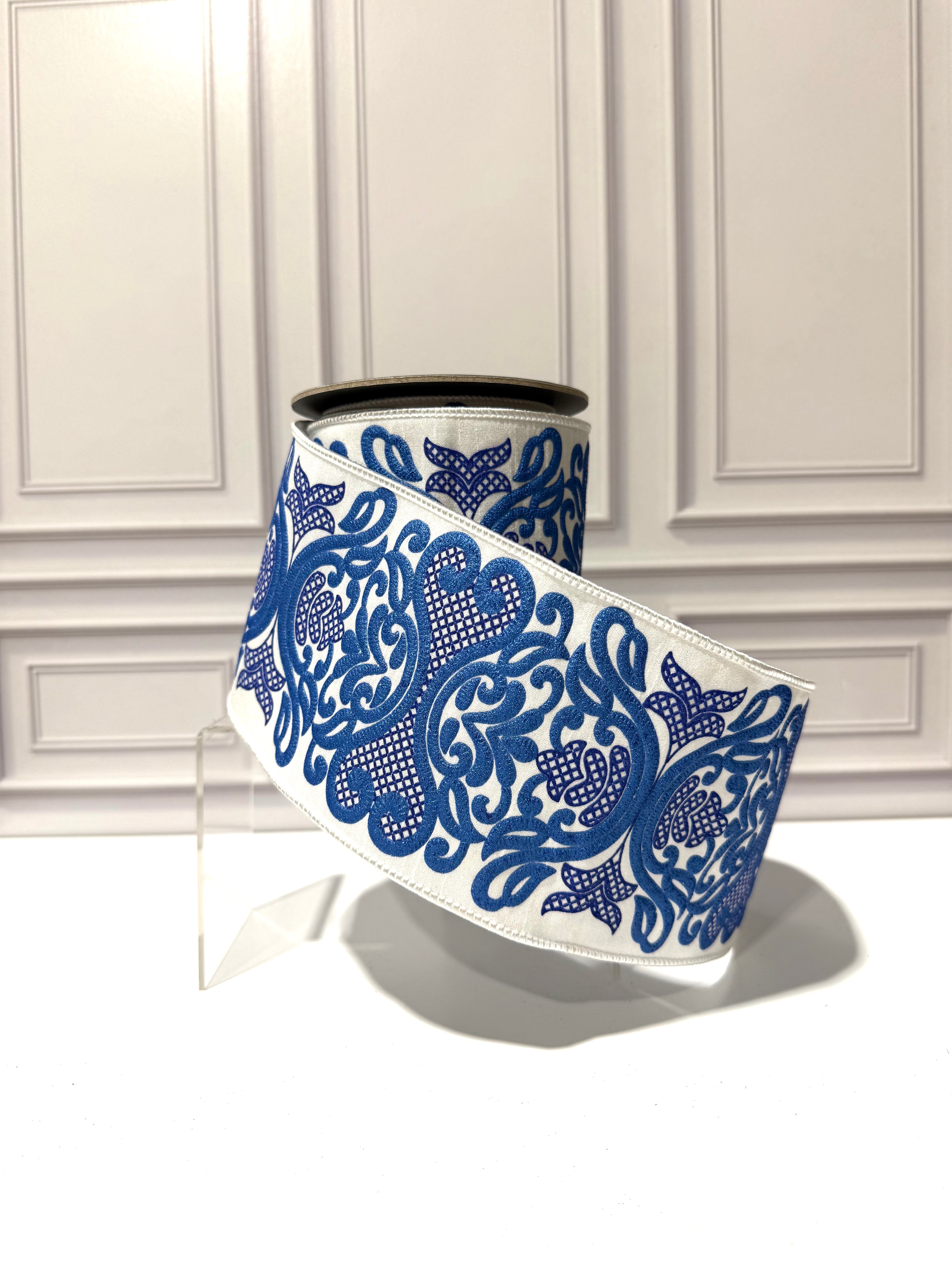Regal Filigree Chinoiserie Printed Dupioni Wired Edge Ribbon
