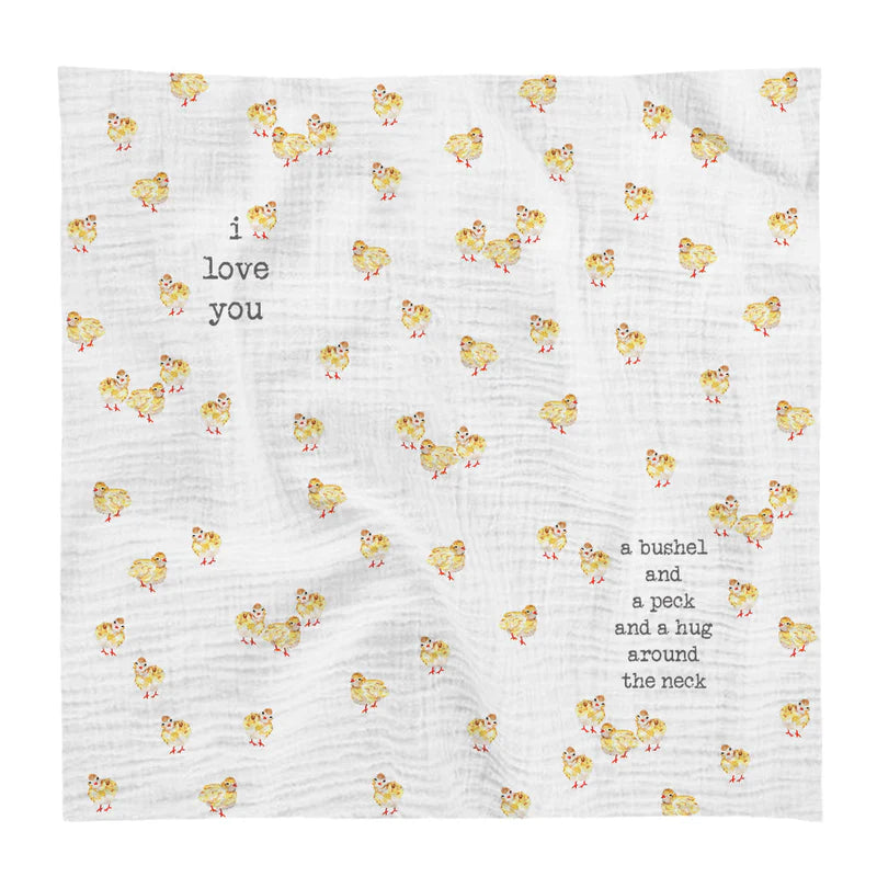 Made from 100% organic cotton our baby swaddles are adorned with hand painted artwork and a sweet quote.
