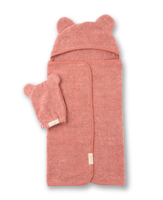 Splish splash! This set includes everything you need for baby’s bath time. Featuring a cozy, ultra-soft hooded towel and coordinating wash mitt. The little ears may not help them listen better, but they sure are cute! Our absorbent terry fabric is made of OEKO-TEX® certified and sustainably sourced cotton and a recycled polyester that keeps 8 plastic bottles out of landfills.