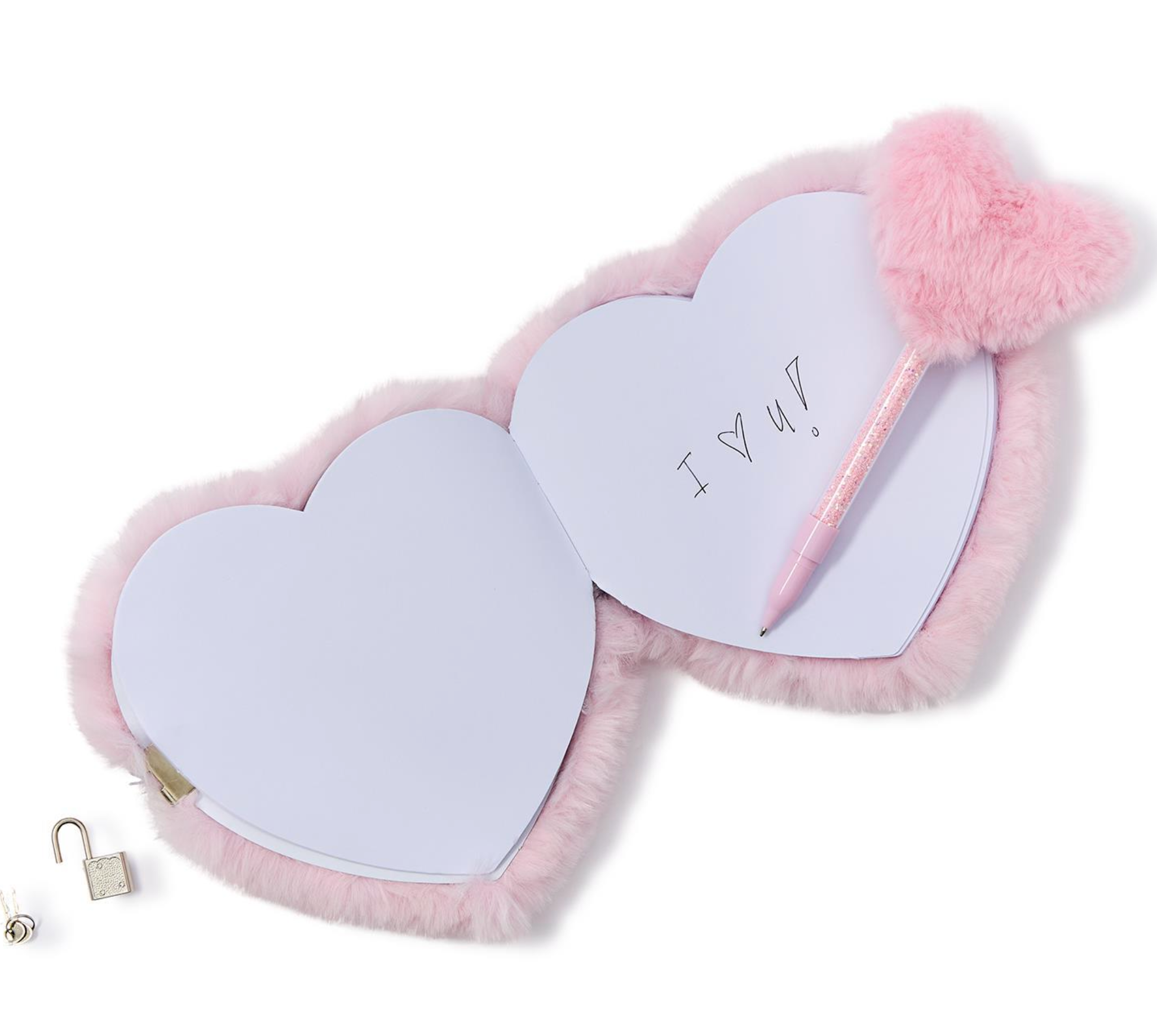 Plush Faux Fur Heart Journal with Lock and Key