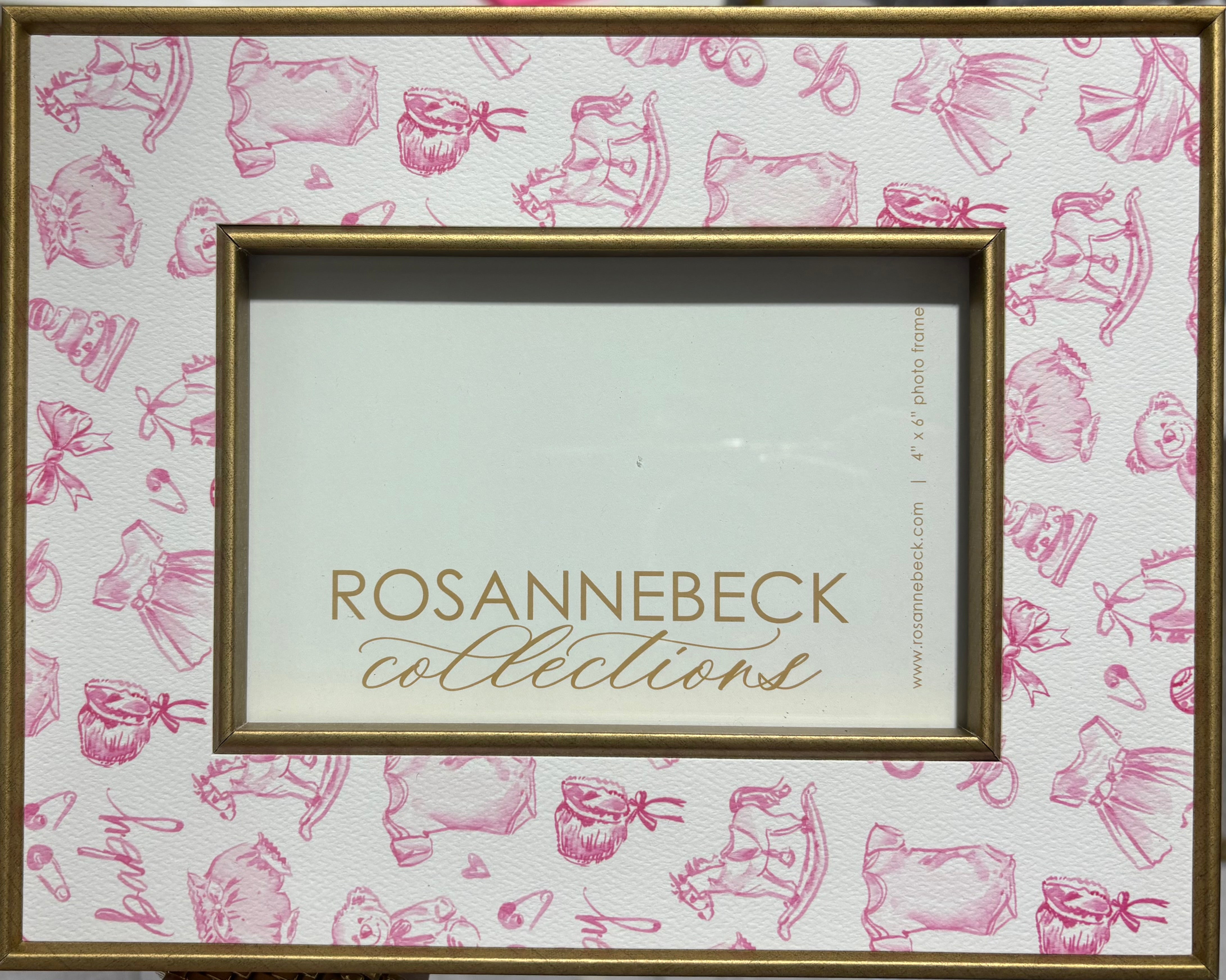 4x6 Hand Painted Baby Toile Frame- Pink