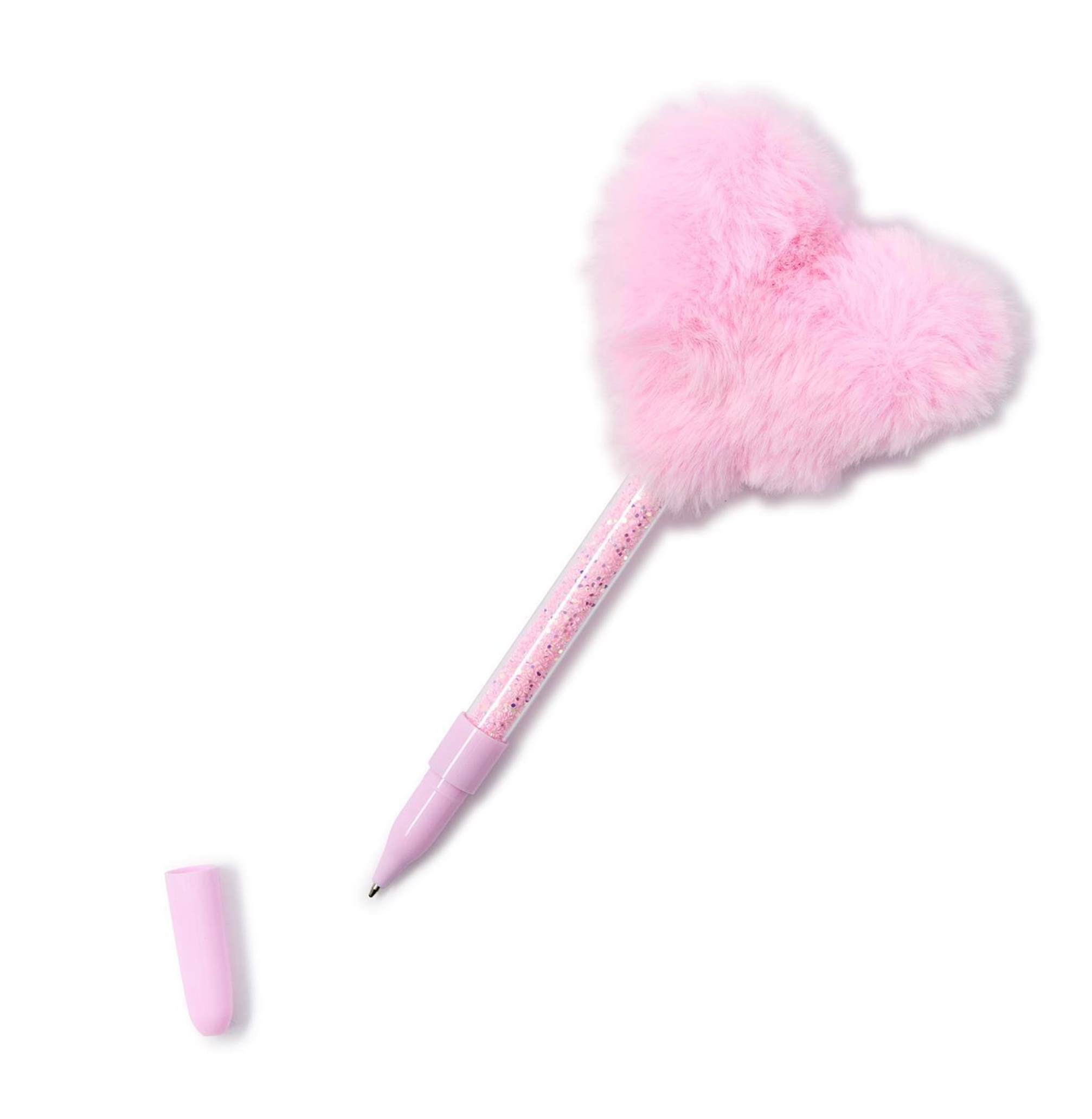 Warm Fuzzies Plush Faux Fur Heart and Confetti Pen