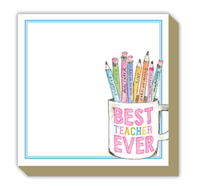 HANDPAINTED BEST TEACHER EVER PENCIL CUP LUXE NOTEPAD