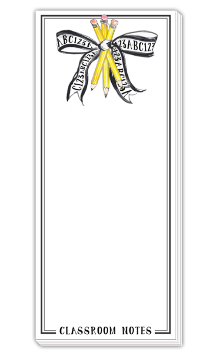 HANDPAINTED SCHOOL BOW WITH PENCILS SKINNY NOTEPAD