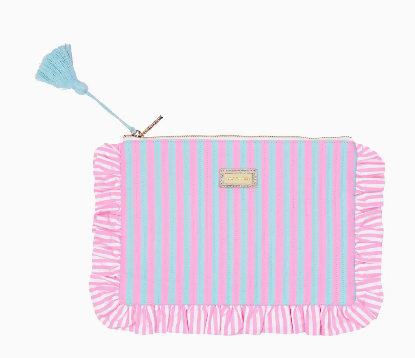 Stay stylish and organized with our Ruffle Pencil Pouch. This stripe patterned pouch, brought to you by Lilly Pulitzer by Lifeguard Press, is a chic and practical addition to your desk essentials. It's perfect for keeping your writing instruments neatly stored. Inspired by Lilly Pulitzer's iconic fashion sensibility, this pouch adds a splash of color to your stationery collection. It's more than a pencil case, it's a reflection of your taste.