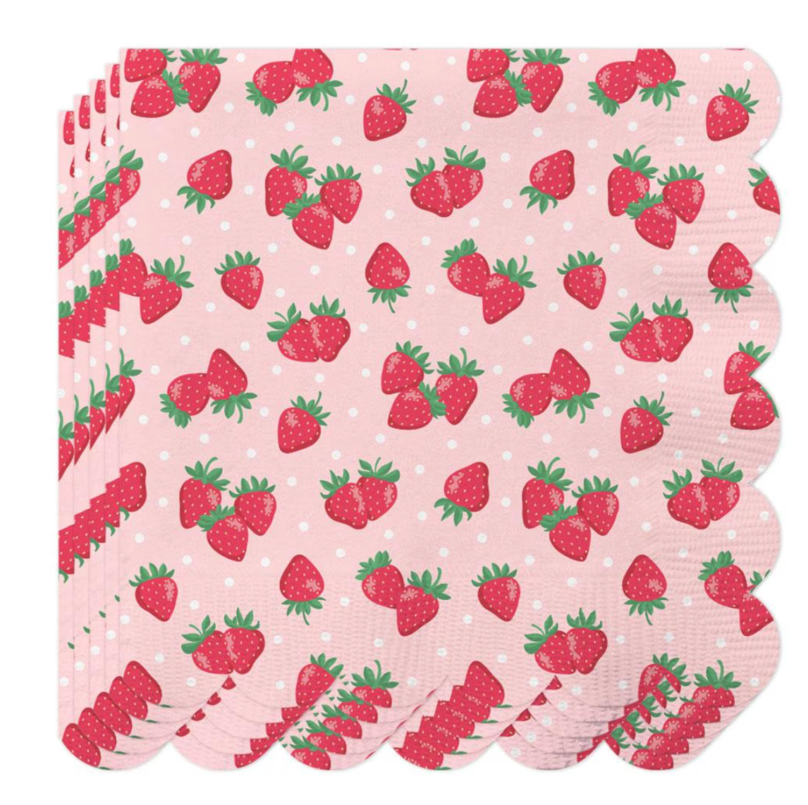 Elevate your celebration! 🎉 Stay berry sweet all season long with these fresh picked strawberries and charming polka dots on a blush pink background. 🍓
