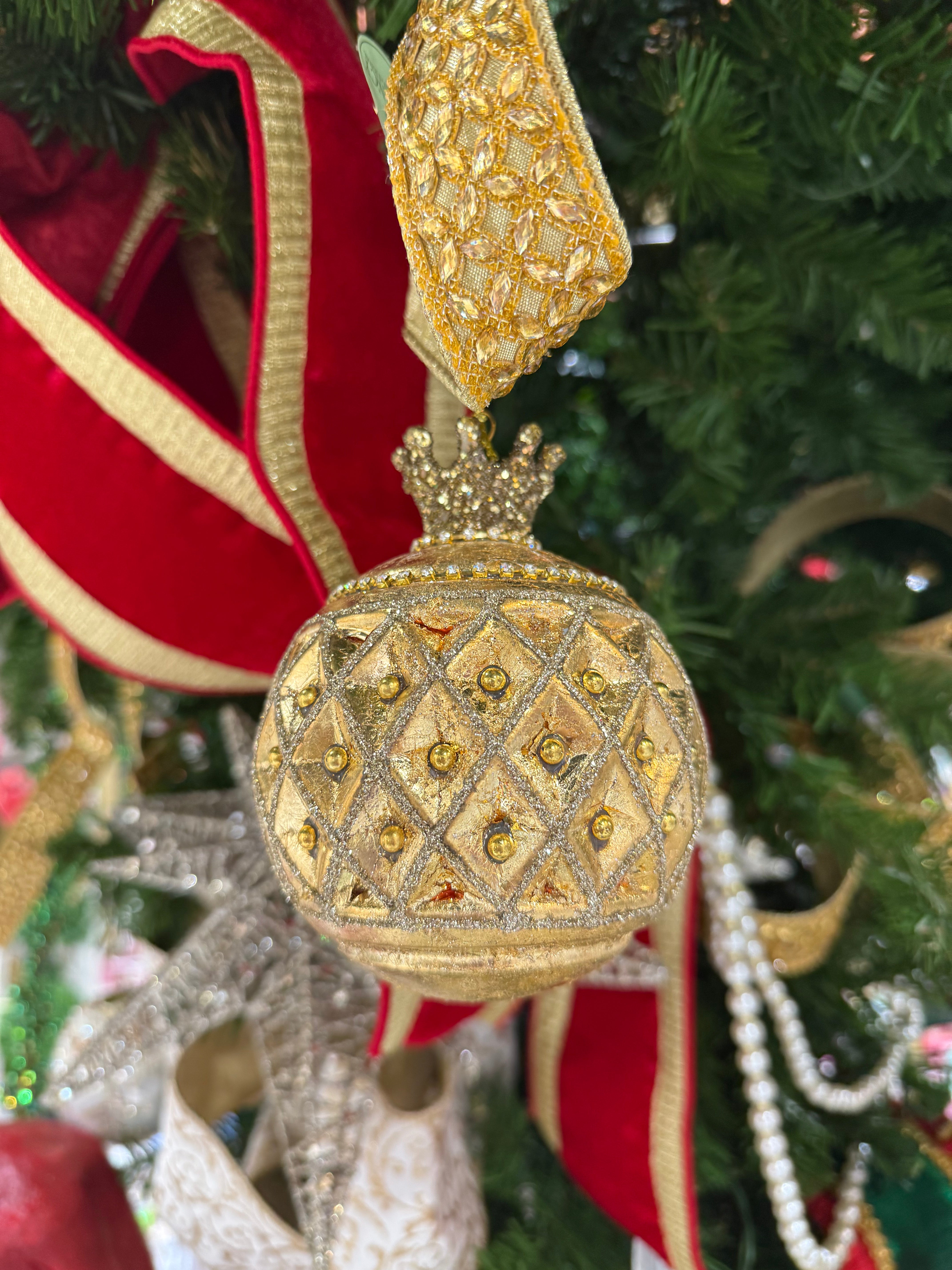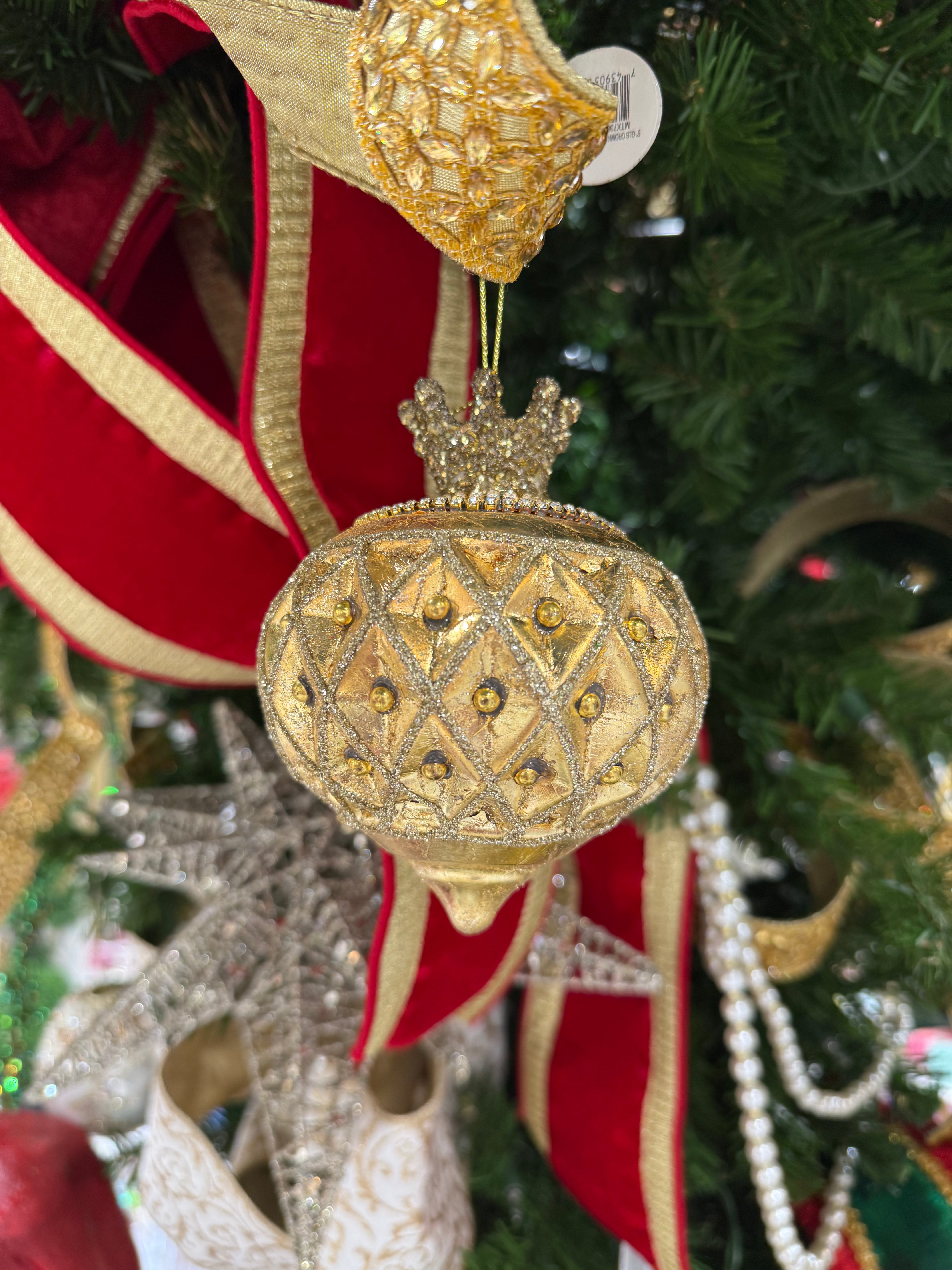 5" Gls Crown Ball/Finial Ornament 2/Ast