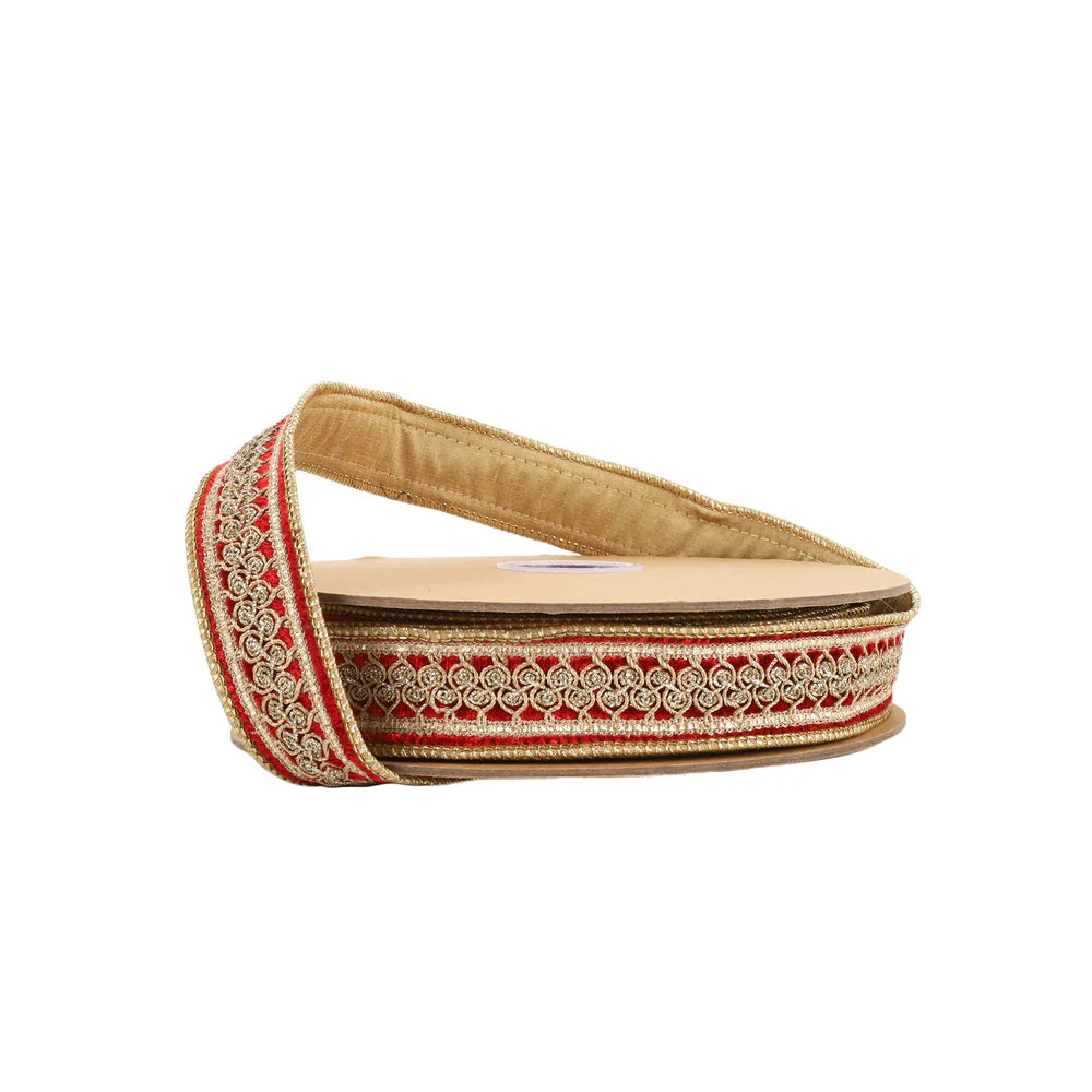 1 1/2" Double-Fused Wired Velvet Ribbon w/ Metallic Trim | Red/Gold | 10 Yard Roll