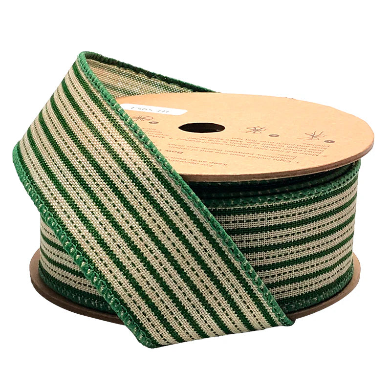 • Festive Green Mini Striped Ribbon: Our 1 1/2" Wired Ribbon features a vibrant and festive design with shimmering green mini stripes on a natural ribbon, adding a delightful pop of color and elegance to your holiday crafts and decorations. Each roll comes with 10 yards of ribbon, providing ample material to accommodate various decorating needs and creative endeavors.