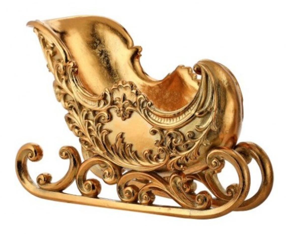 Elevate your holiday decor with the 15" Resin Scroll Sleigh in a refined gold finish. Its elegant scrollwork and polished design offer a timeless accent, perfect for showcasing seasonal treasures with understated sophistication. A graceful addition to any festive setting.