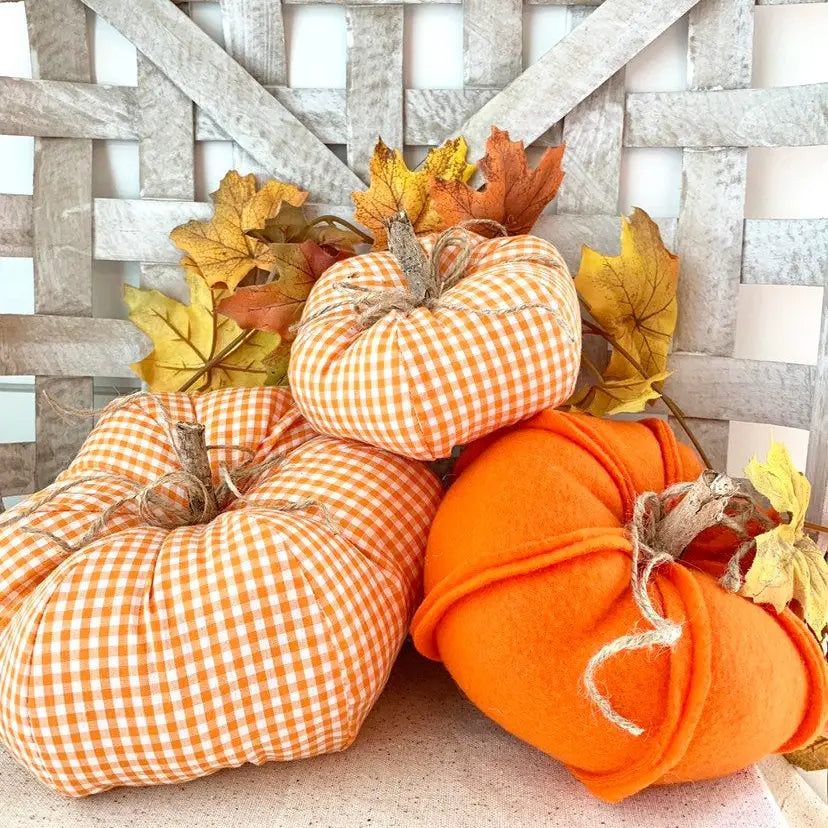3 Pc. Orange Gingham Fabric Pumpkin Set