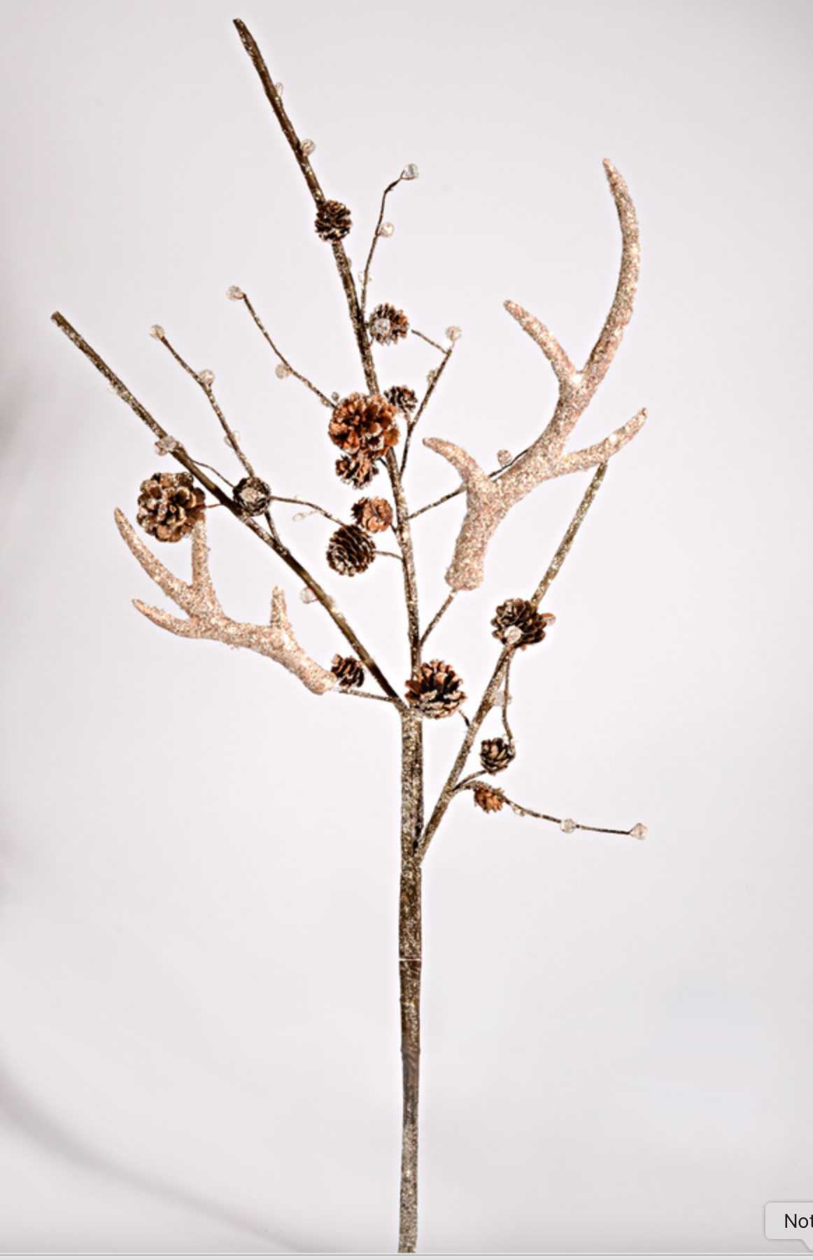 Add a touch of winter whimsy to your decor with this 35" Frosted Antler, Cone, and Clear Bead Spray. Perfect for festive arrangements or holiday crafts, its sparkling frosted finish and delicate beads bring a playful sparkle that catches the eye. Use it to brighten mantels, wreaths, or centerpieces with a frosty flair that’s full of seasonal charm.