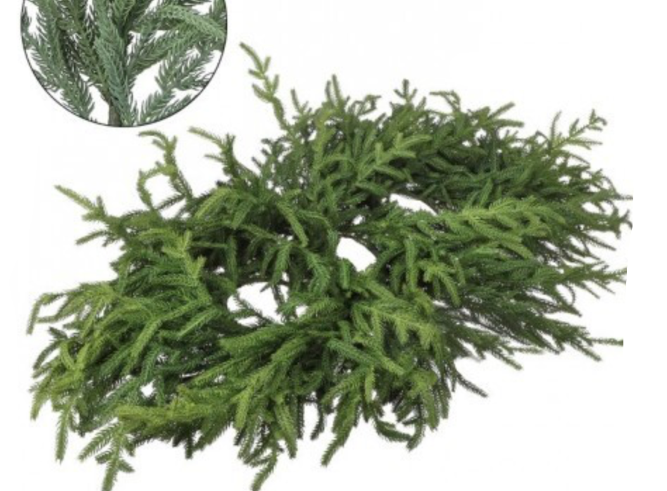 36" JustCut Norfolk Pine Centerpiece, featuring lush, naturally fragrant pine branches expertly arranged to create a refined and timeless display. Perfect for adding a touch of elegance to any table or mantel, this centerpiece brings subtle natural beauty and a sophisticated ambiance to your living space.