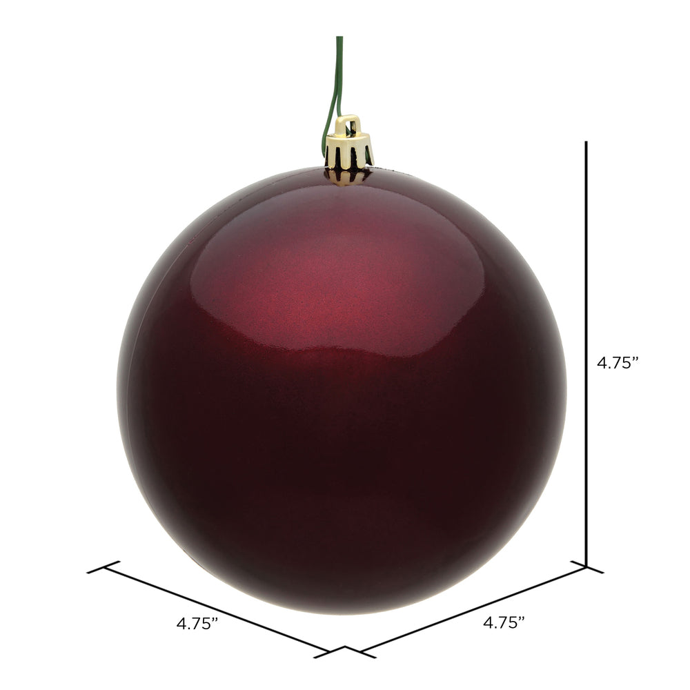 Add rich elegance to your holiday décor with the 4.75" Burgundy Candy Ball Ornament. Featuring a deep burgundy hue with a candy-like shine, this ornament brings warmth and sophistication to Christmas trees or garlands. Made from shatterproof plastic with a durable cap, it combines lasting quality with timeless holiday charm.