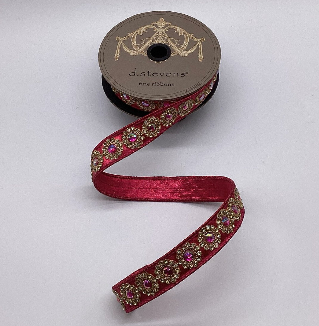 Elevate your floral arrangements with this luxurious pink jeweled wired ribbon. The one-inch width and five-yard length provide ample material for bows, embellishments, and decorative accents. The embedded jewels catch light beautifully, adding an elegant sparkle to any presentation. The built-in wire allows you to shape and position the ribbon exactly as envisioned, ensuring professional results every time.