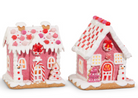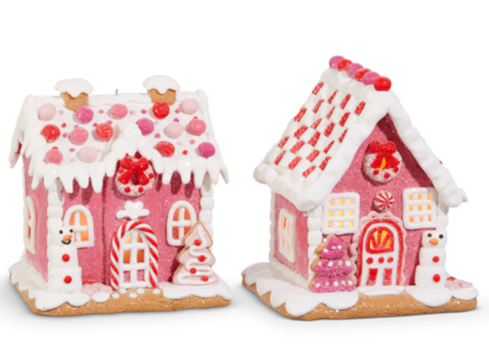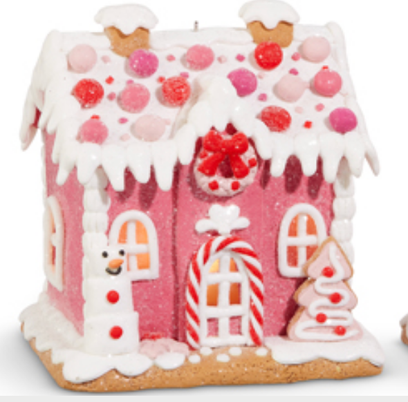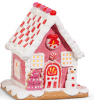 5.5" LIGHTED PINK GINGERBREAD HOUSE ORNAMENT