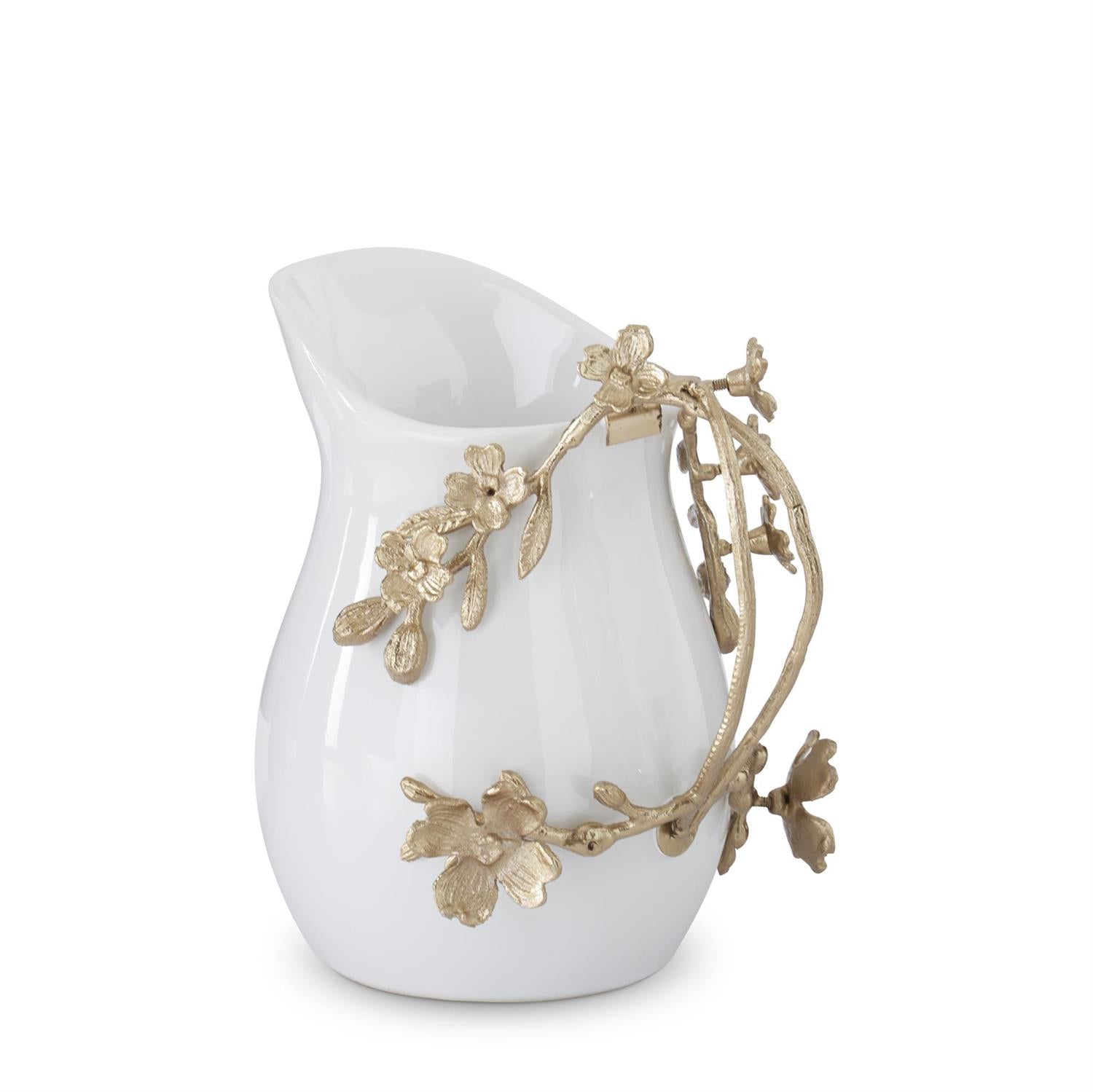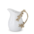 8.5 Inch White Ceramic Pitcher w/Gold Metal Floral