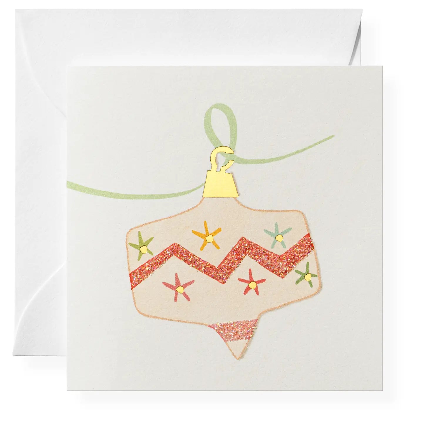 Deck the Halls with this perfectly adorable box of hand-glittered cards featuring an ornament. Book folded cards, blank on the inside. Paper color | white Envelope color | white Print process | full color. Embellishment | hand-glittered. Dimensions | 3 x 3 inches.