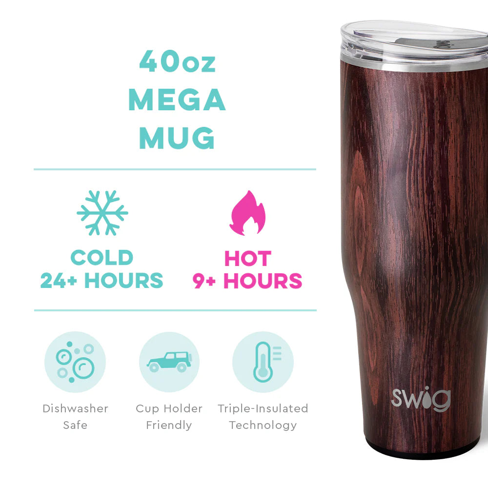 Hydrating has never been easier with our 40oz Insulated Mega Mug! A cup holder-friendly frame and comfort-grip handle come together to create your new favorite Swig.
