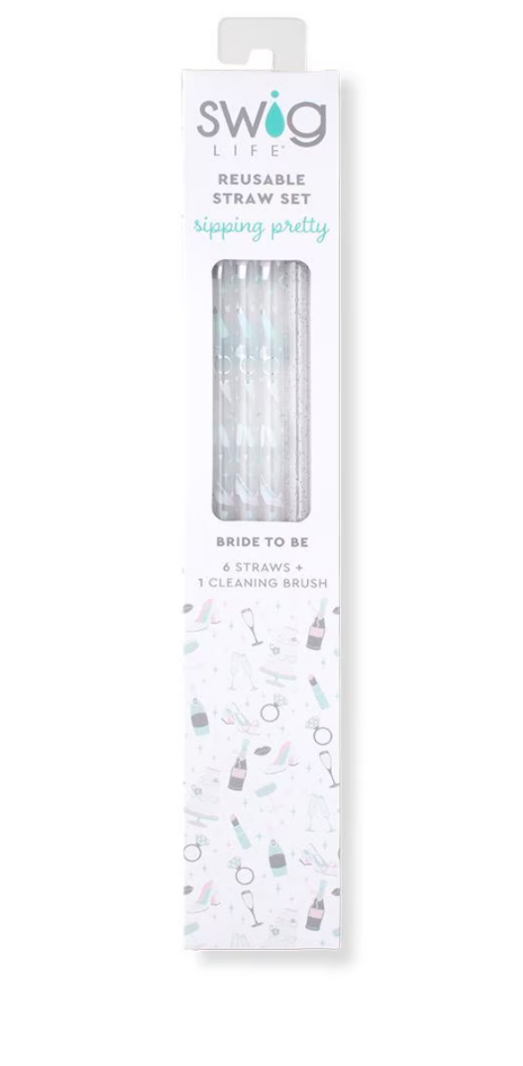 Bride to Be + Silver Glitter Reusable Straw Set