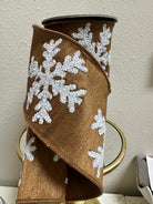 4" x 5yds faux dupion matte glitter snowflake, white-brown