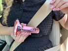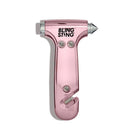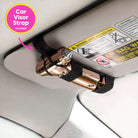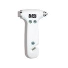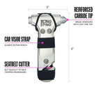 This proprietary visor strap holds the (super-cute, of course) hammer securely in place on your visor. This is to ensure it’s accessible and ready when you need it, and not trapped in the glovebox or center console and out of arm’s reach. With a quick tap of the carbide tip, windows shatter instantly allowing you to punch through the window to safety. The recessed blade is sharp enough to slice right through seatbelts, no problem.