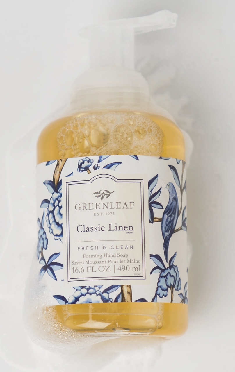 Rich and indulgent, our foaming hand soap offers a luxurious fragrant lather designed to cleanse and refresh your hands. Infused with coconut oil, this gentle perfumed soap moisturizes while washing away dirt and leaving a light but beautiful fragrance on your skin. Fragrance Description: With the irresistible allure of freshly laundered sheets, classic linen layers sweet spring air with cooling water notes. Soft floral blooms embrace warming balsamic accords in an utterly luminous fashion.