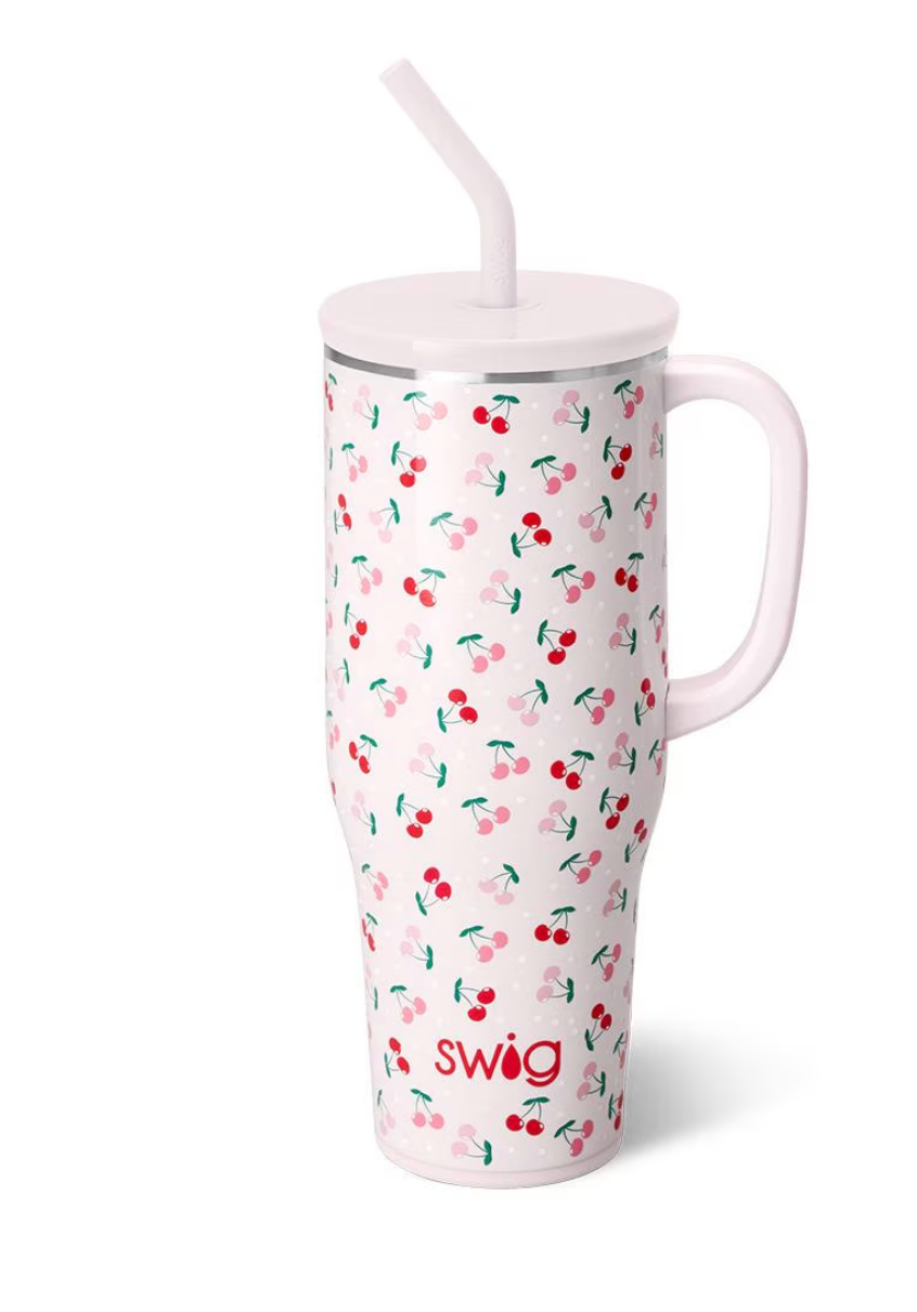 Hydrating has never been easier with our 40oz Insulated Mega Mug! A cup holder-friendly frame, a comfort-grip handle, and a plastic straw with a silicone flexi-tip all come together to create your new favorite Swig.