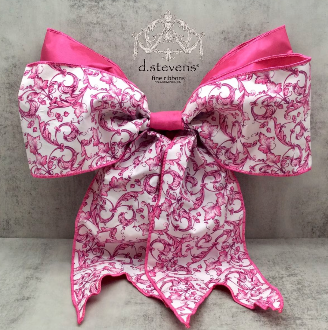 Description: 6" x 18" taffeta bow acanthus scroll chinoiserie, pink white