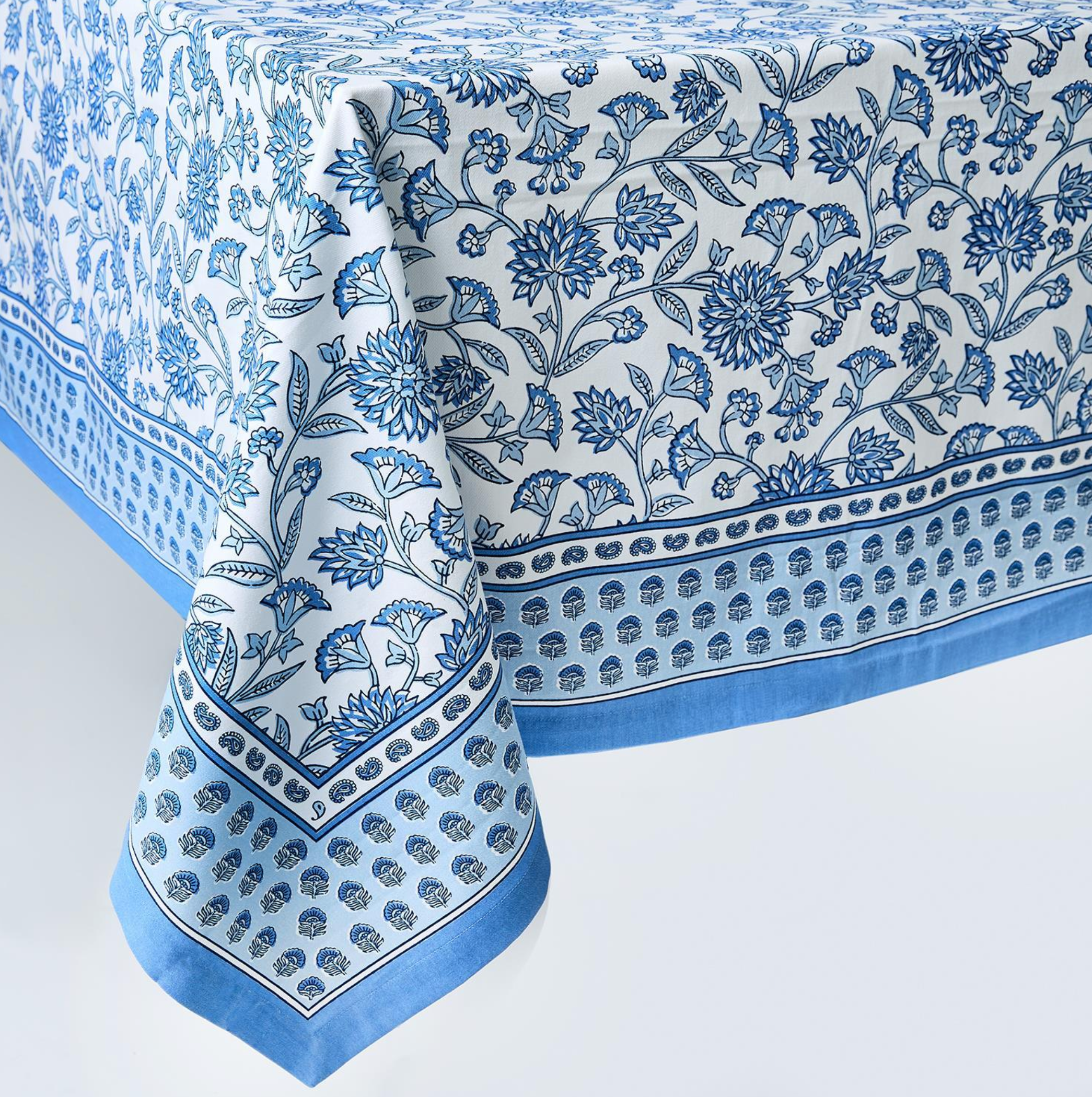 Transform your dining space into a scene from a vintage French countryside with Chinoiserie Set of 2 Blue Block Print Tablecloths. Made of luxurious cotton, these tablecloths boast a classic chinoiserie design that exudes elegance and charm. The set includes two sizes providing versatility for various table shapes and sizes. Handcrafted with care, these tablecloths are not just functional but also a work of art.