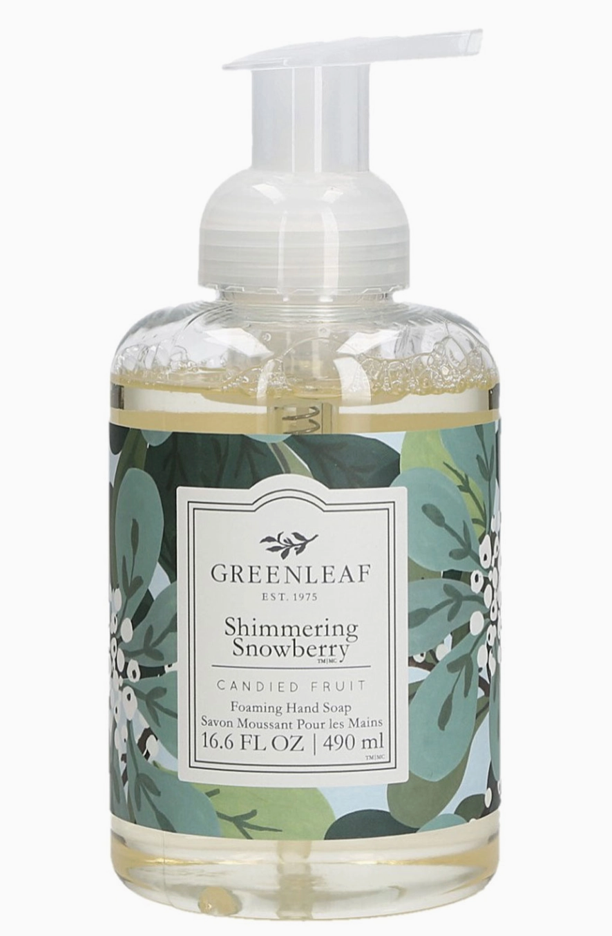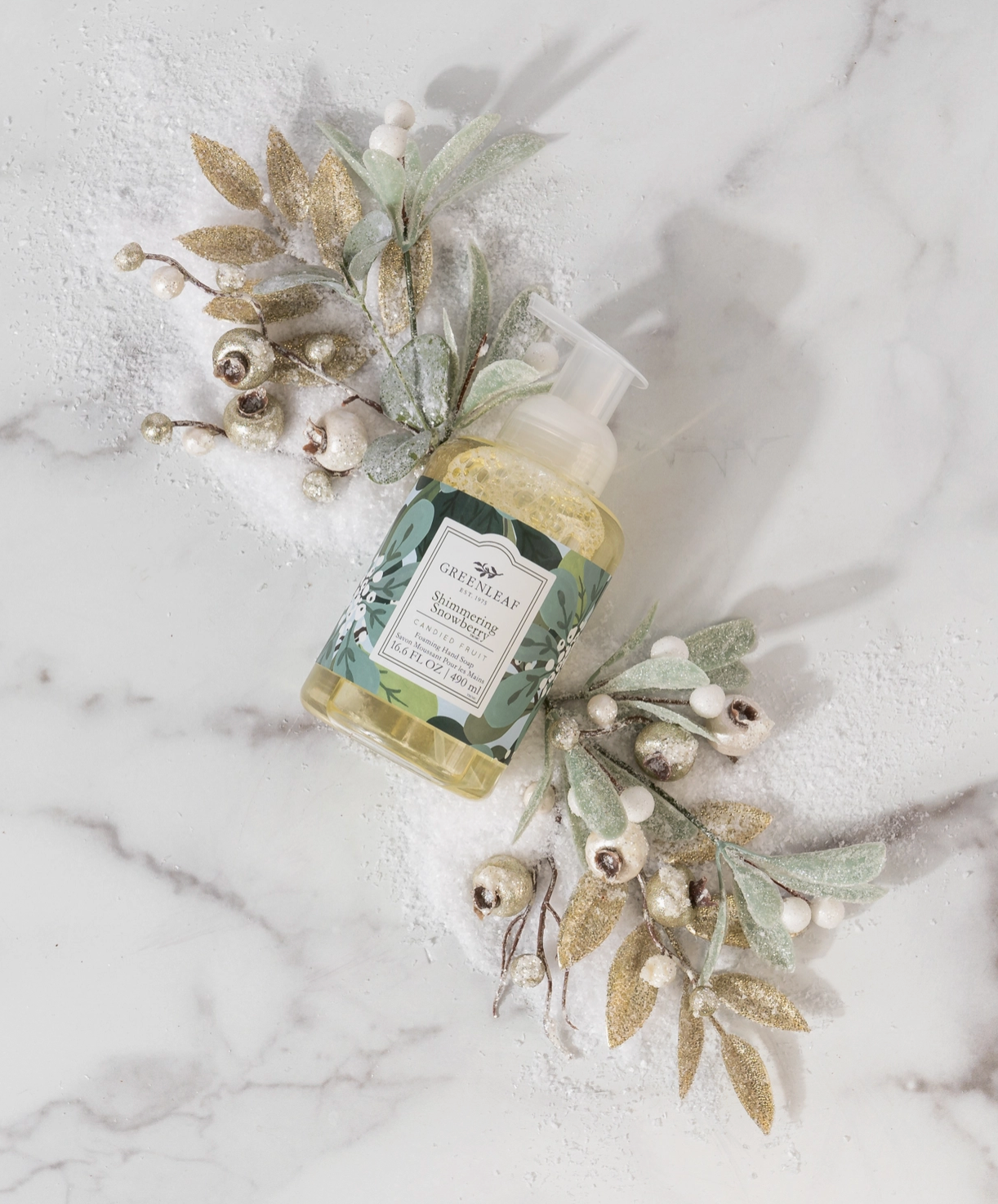 Perfect for your Christmas 2024 displays, your customers will love the holiday scent of Greenleaf's Shimmering Snowberry Hand Soap! Rich and indulgent, our foaming hand soap offers a luxurious fragrant lather designed to cleanse and refresh your hands. Infused with coconut oil, this gentle perfumed soap moisturizes while washing away dirt and leaving a light but beautiful fragrance on your skin.