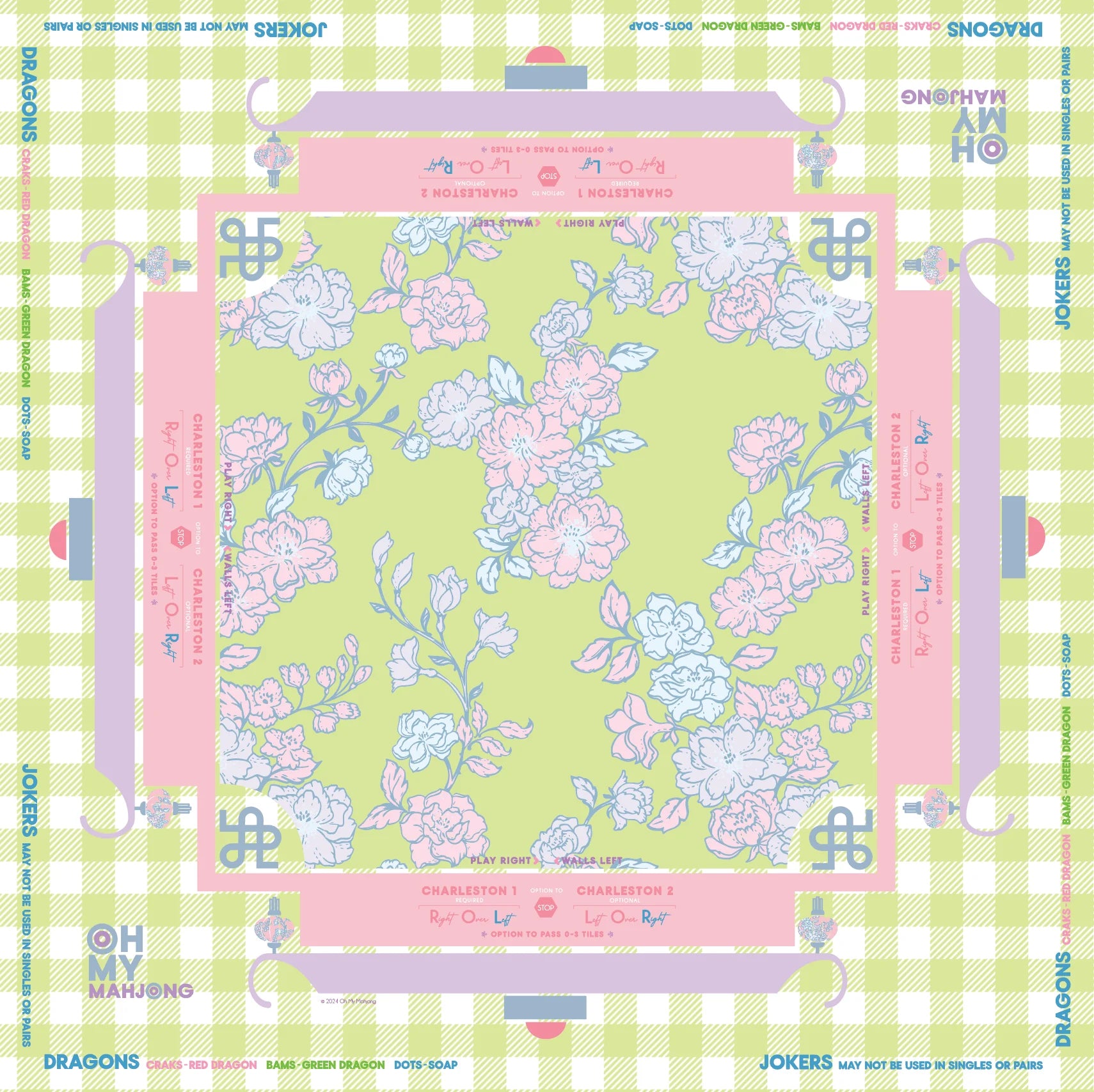 Introducing the Garden Party Mahjong Mat—a delightful combination of vibrant pastel hues and enchanting florals, intertwined with a charming green gingham pattern. This neoprene mat features a non-slip bottom to ensure your tiles stay perfectly in place, game after game. Adorned with delicate blossoms and inviting colors, it exudes a frilly femininity that is both elegant and playful. Along the sides of the mat, you’ll find the signature Oh My Mahjong instructional reminders, guiding you through each round.