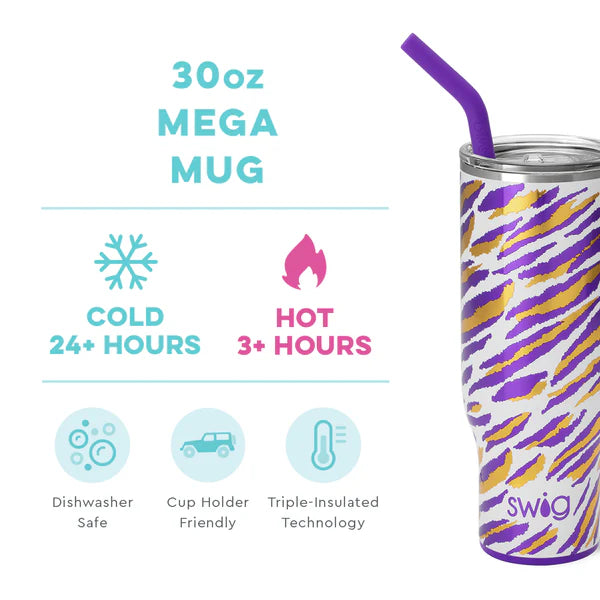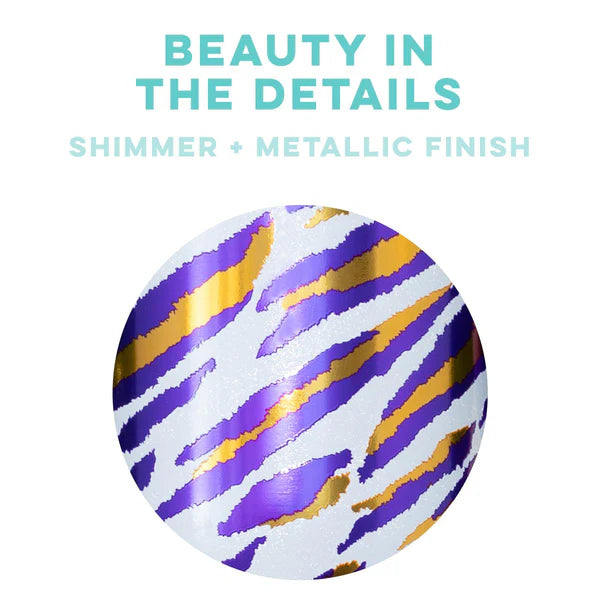 Mega sips, mega chill! π§ Rawr from the tailgate to touchdown with this metallic tiger stripe design. π