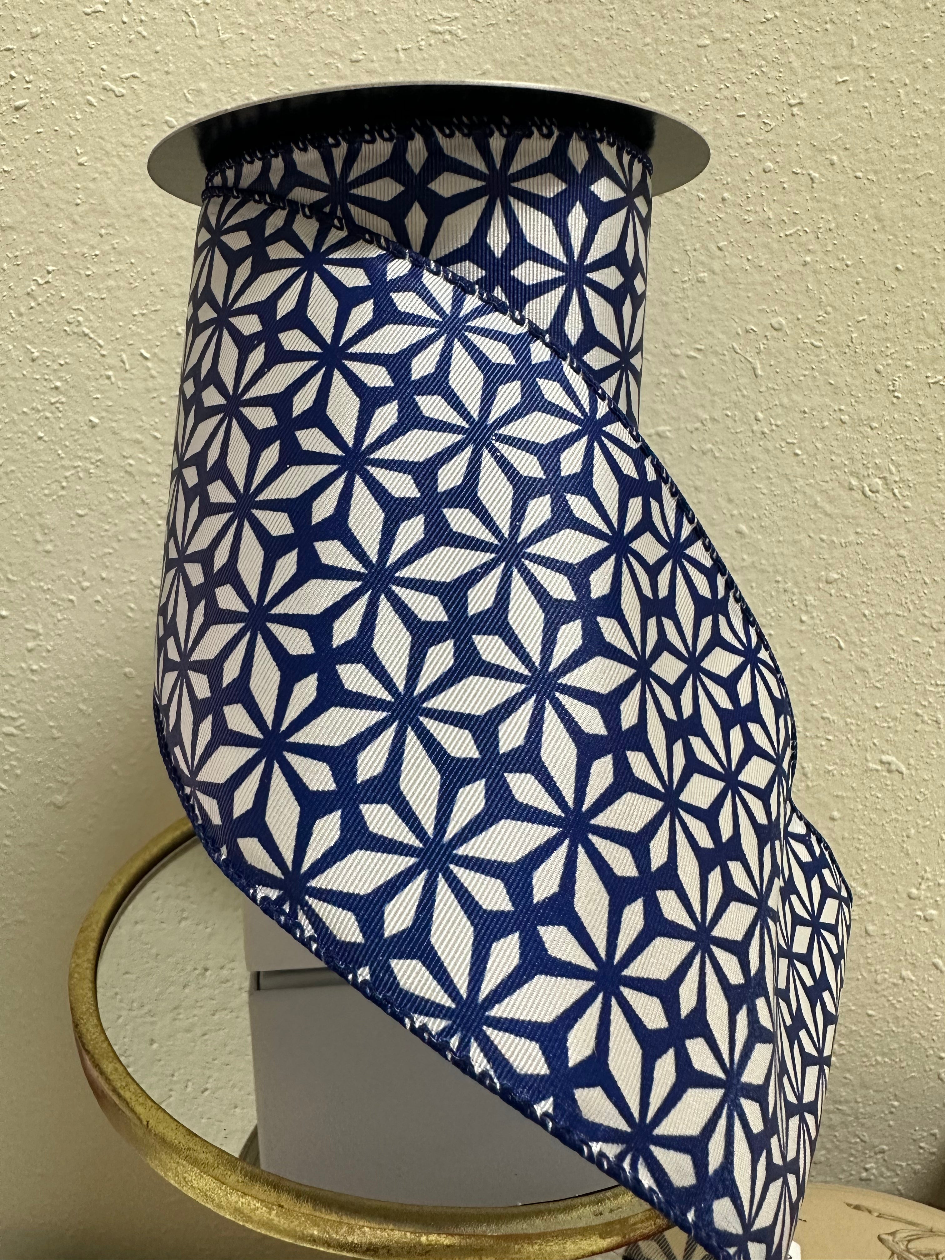 4"x10yds geo pattern poinsettia , white/navy