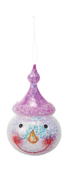 Glass Snowman Head Ornament with Iridescent Glitter