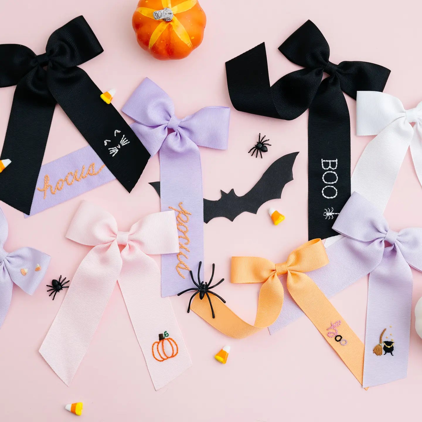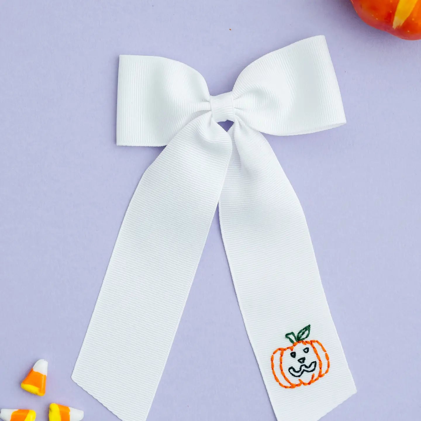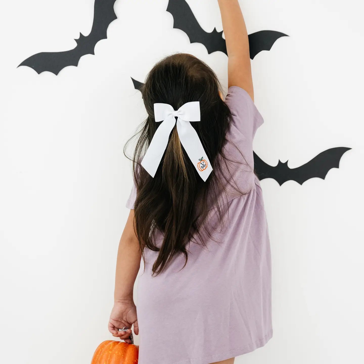 A tried and true Halloween bow! We offer this in sizes small, medium and large on white and pale pink.