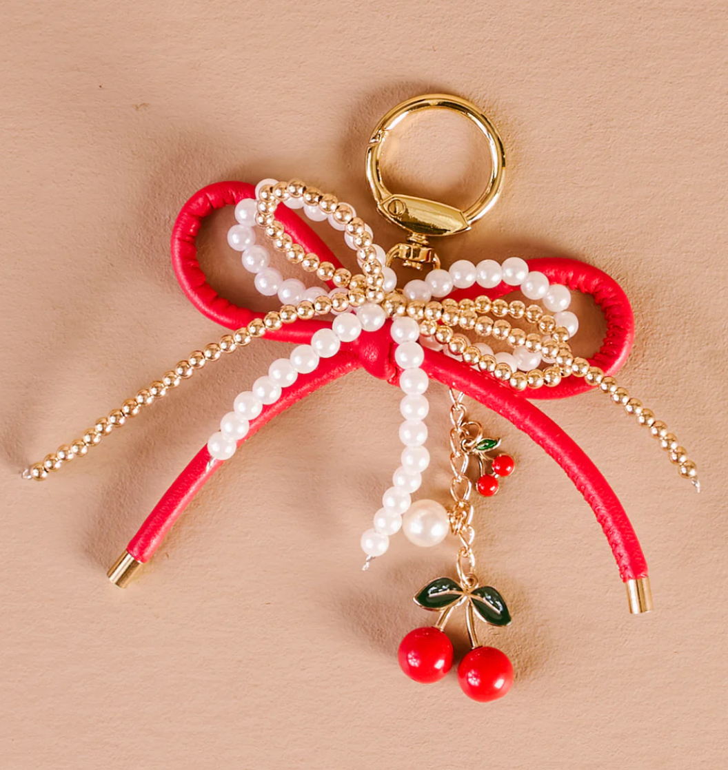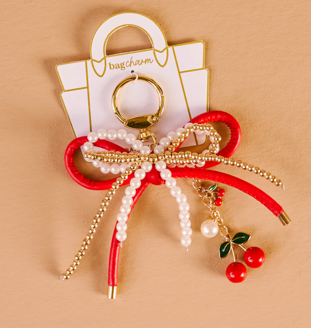 Layered Bow Bag Charm-Red