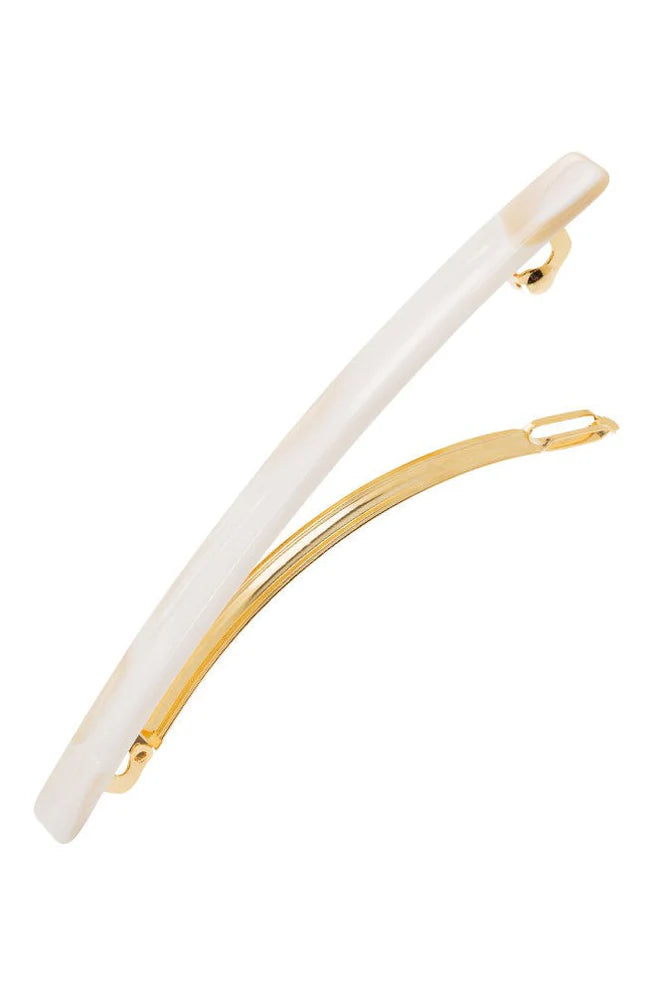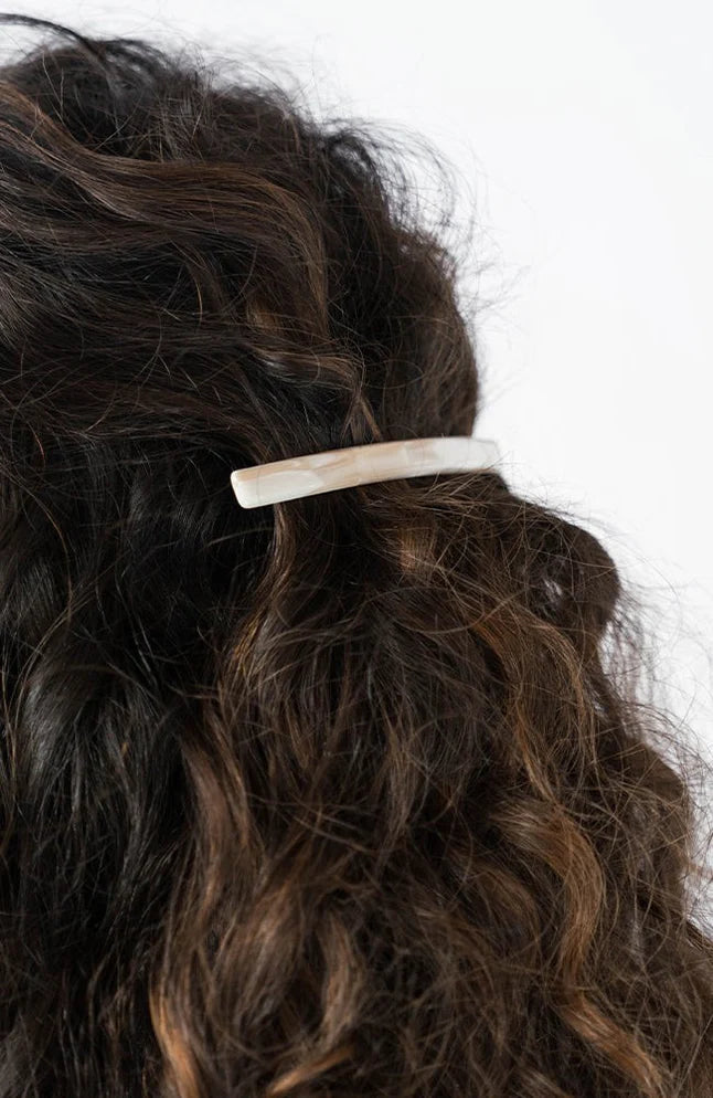 Slim, sleek, and endlessly refined, the France Luxe Long & Skinny Classic French Barrette is handmade in France to bring understated elegance to your everyday. Designed for thin hair and suitable for all hair types, this polished accessory blends form and function with a strong French style clasp and a graceful, elongated silhouette. At 4.25 inches long and .5 inches wide, it flatters the natural curve of the head while securing side sections or sleek half-up styles with ease and comfort.